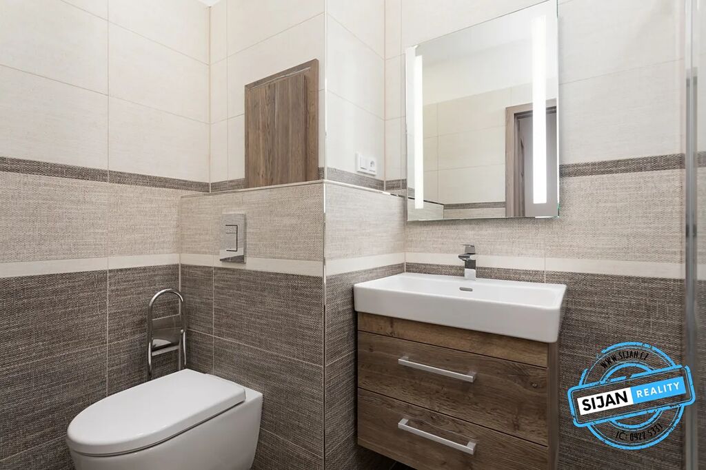 Moderní kuchyně včetně spotřebičů - vestavná mikrovlnka, elektrická trouba s Wi-Fi ovládáním přes telefon, indukční sklokeramická deska, digestoř, myčka, vestavná lednice a mrazák, fragranitový dřez, kuchyňská baterie se sprškou. Koupelna je společná s toaletou, prosklený sprchovací kout, umývadlo se skříňkou a prostor na pračku s horním plněním. Podlahy jsou bez přechodových lišt v jedné úrovni a stejného vzhledu, LED stropní osvětlení do sádrokartonových stropů, vchodové bezpečnostní dveře. Byt je ve zbylých dvou pokojích nezařízený, ale je připraven pro nového podnájemníka.