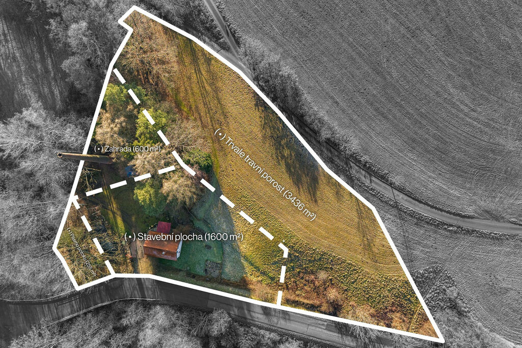 Na hlavní stavební ploše o rozloze 2455 m² stojí menší rodinný dům, který můžete využít k okamžitému bydlení, jako zázemí pro budoucí výstavbu, nebo ho přestavět či nahradit novou moderní stavbou. Díky své poloze a napojení na inženýrské sítě je ideálním startovním bodem pro realizaci vašich plánů. Pozemek je částečně oplocen a přístupný z hlavní komunikace i z jižní strany po obecní cestě. K dispozici je vlastní studna (4 m), elektro přípojka a tříkomorový septik (3 m³); možné je i řešení domácí ČOV. Velkou výhodou je, že v bezprostředním okolí nejsou žádní sousedé – zaručen je tak klid a maximální soukromí.