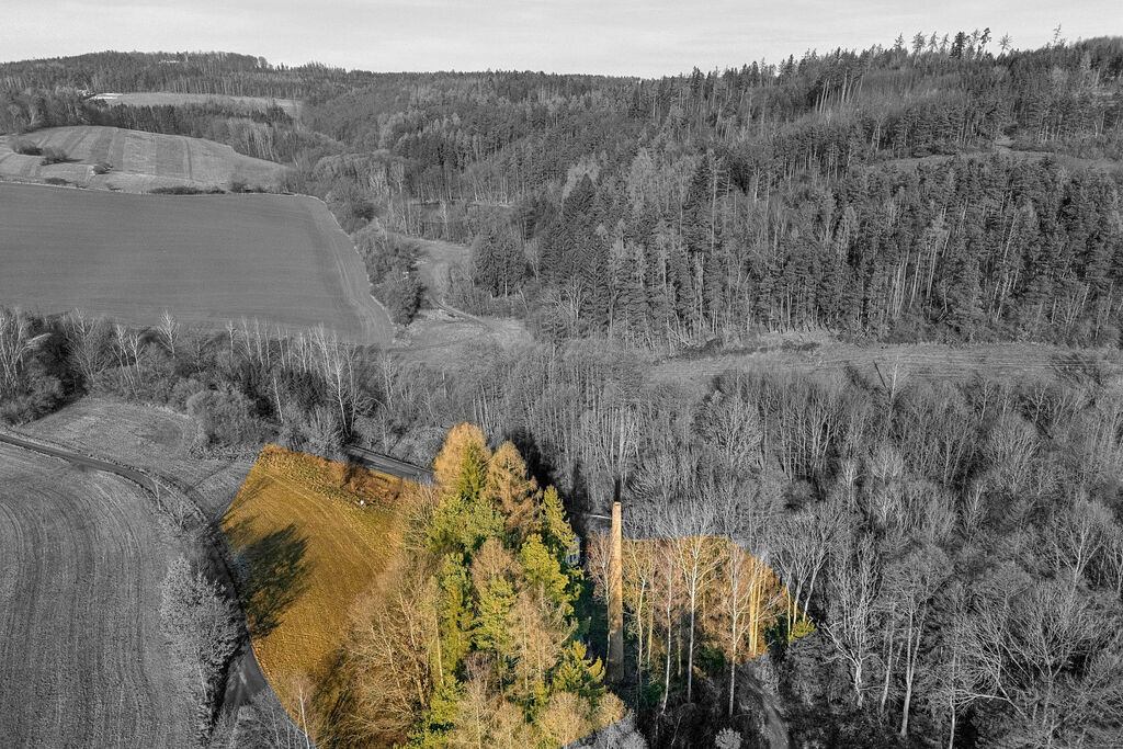 Dominantou pozemku je historický komín – pamětník dob zdejší cihelny – který dodává celému místu výjimečný nádech a může se stát ikonickým prvkem vaší budoucí vize.