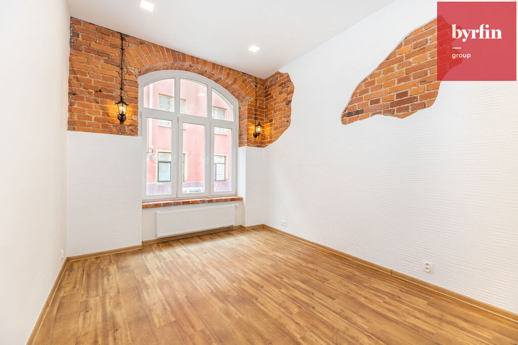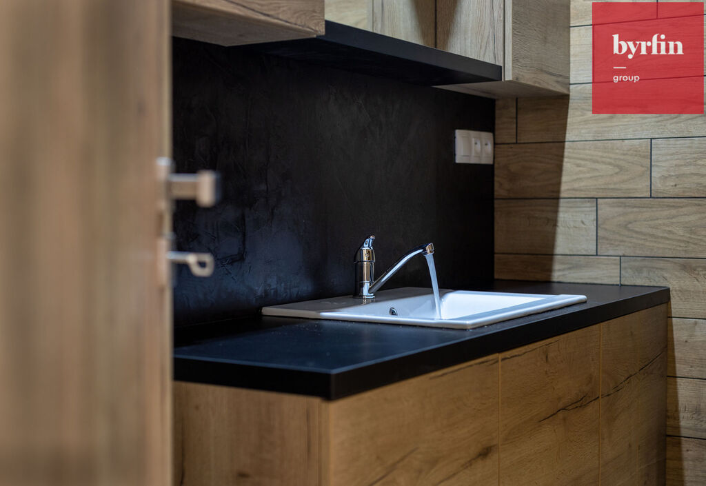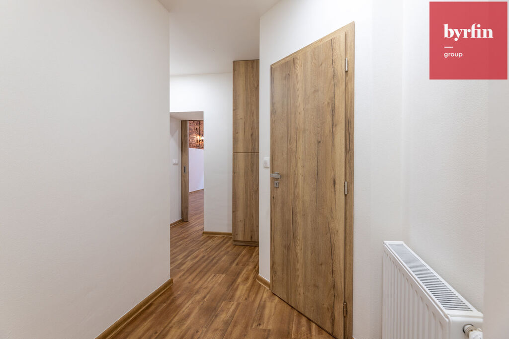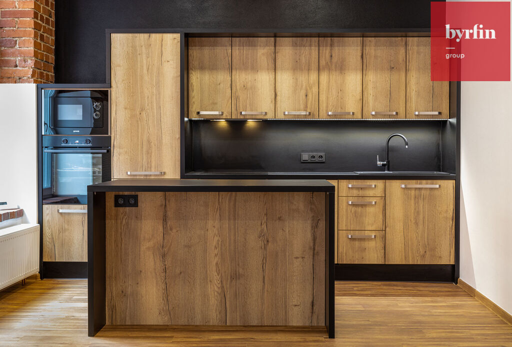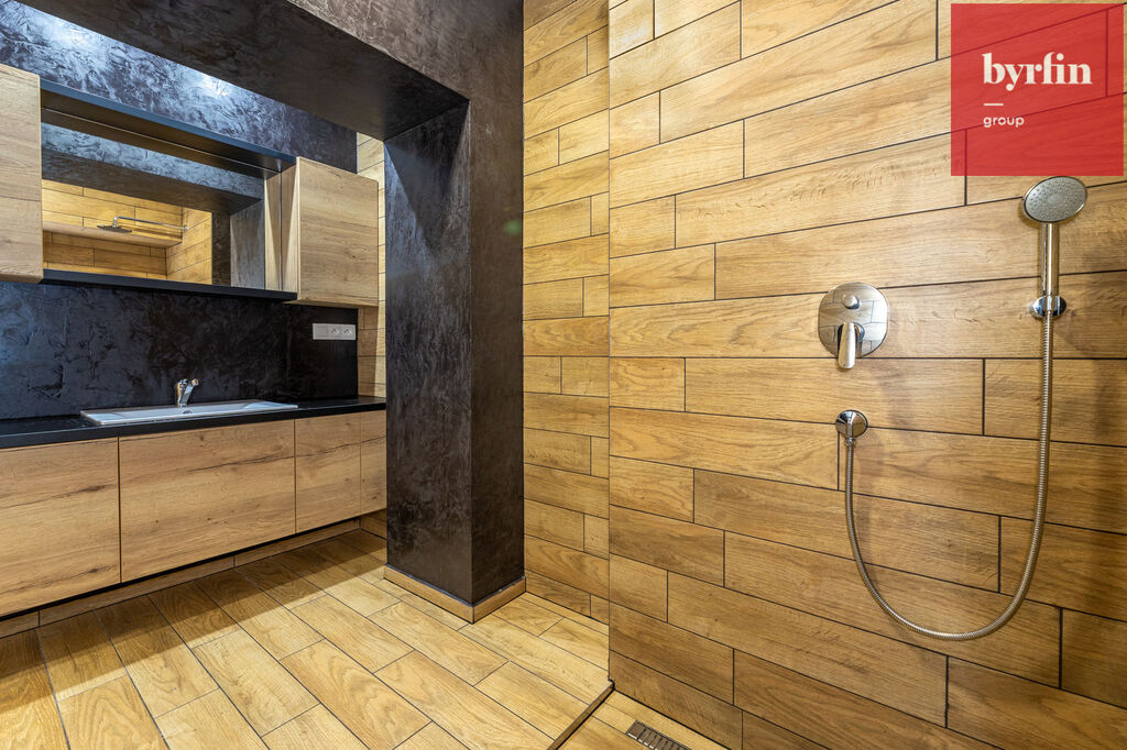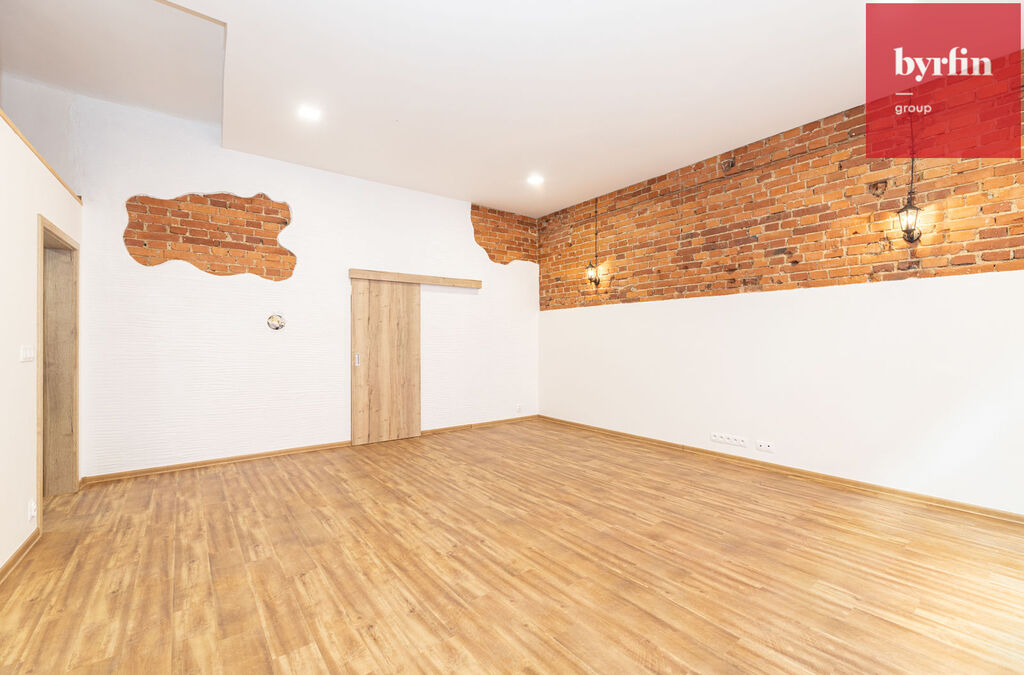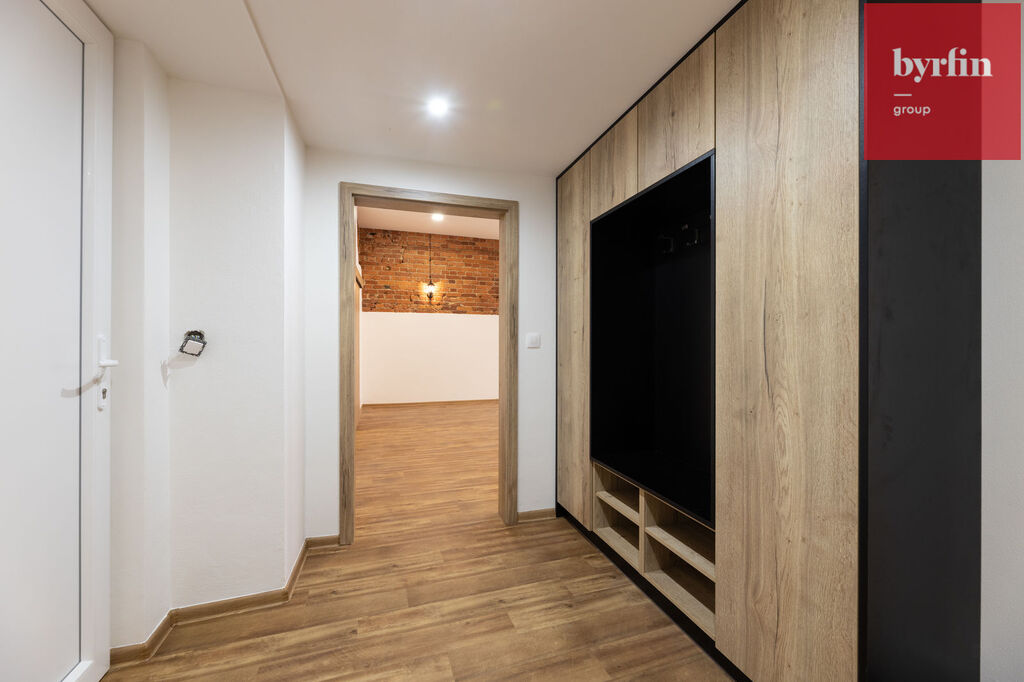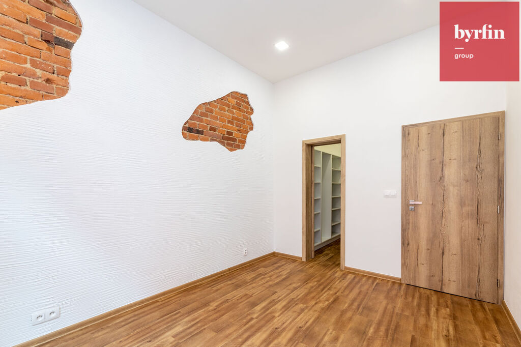 Jedná se o vybudovaný byt v bývalé průmyslové zóně a tak byl majitel při rekonstrukci nucen pracovat s atypickým prostorem, ze kterého vznikl velmi prostorný obývací pokoj s kuchyňským koutem, prostorná hlavní ložnice s šatnou, jeden menší pokoj a jeden pokoj, který svými rozměry může posloužit jako ložnice pro studenta, nebo pracovna. V koupelně vynikne obrovský sprchový kout, toaleta je samostatně.