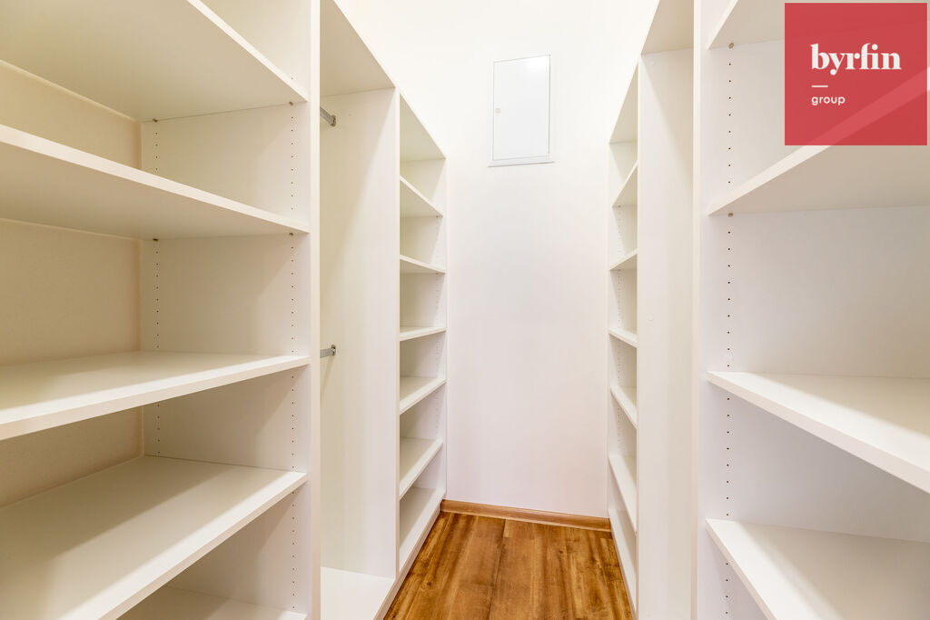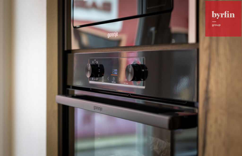 Kuchyňská linka s ostrůvkem nabízí dostatek úložných prostor, ale především kompletní vybavení spotřebiči - vestavné spotřebiče Gorenje - lednice, myčka, mikrovlnná i horkovzdušná trouba, indukční varná deska s digestoří. Mezi další vybavení patří kompletní šatní systém s policemi, šatní stěna v předsíni či dvě vestavné skříně v jednom z pokojů.