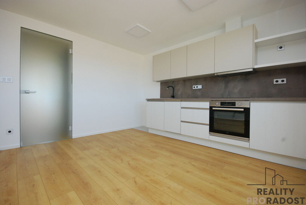 Dispozice bytu: vstupní chodba s místem na šatní skříň i pračku, koupelna, 2 samostatné ložnice se vstupem z chodby, obývací pokoj spojený s kuchyňským koutem. Velké okno v hlavním obývacím prostoru propouští do interiéru dostatek světla. Koupelna je vybavena skleněným sprchovým koutem, umyvadlem, WC, otopným žebříkem a bojlerem. Kuchyňská linka je moderní, vybavená varnou deskou, troubou, myčkou a vestavným odsavačem par. Bez lednice.