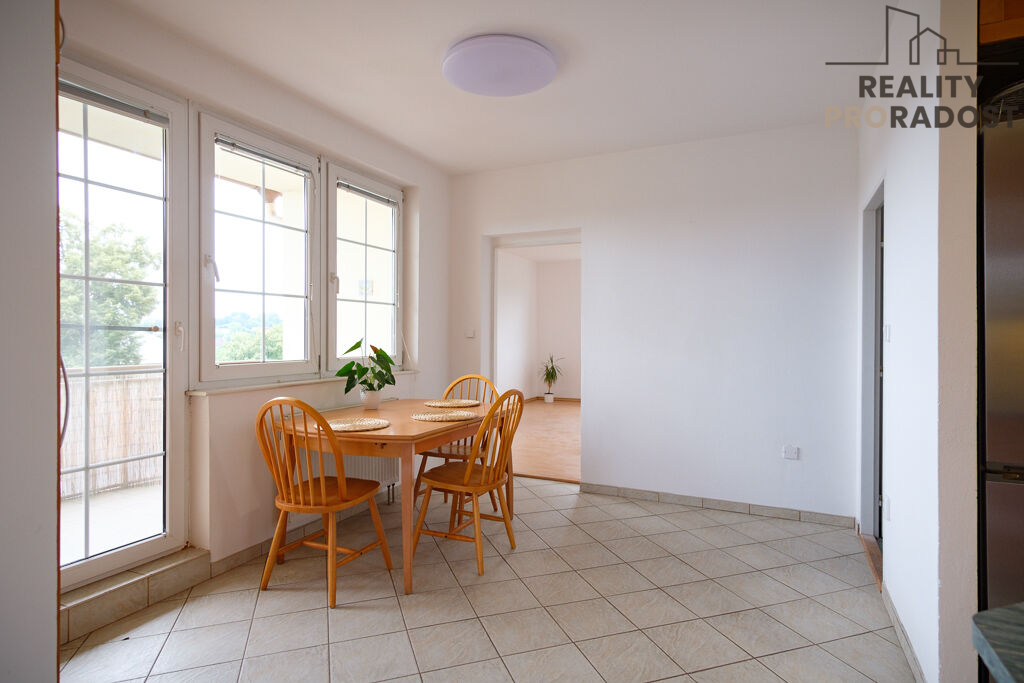 Byt nabízí pěkný výhled, je slunný, orientovaný na jih, východ i západ.