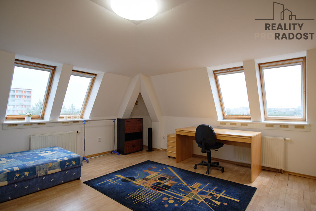 Nabízíme k prodeji slunný mezonetový byt 6+kk o celkové podlahové ploše 156,1 m2 (včetně sklepa - 2,7 m2) s lodžíí (7m2). Byt je situován ve 3. patře (4. NP) a podkroví cihlového bytového domu z roku 2000, bez výtahu - na ulici Politických vězňů v Olomouci. K bytu je možné pořídit i dvojgaráž, nacházející se v oploceném areálu poblíž bytového domu.