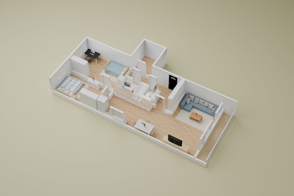 Tento byt je skutečně výjimečný – moderní, světlý a připravený stát se vaším novým domovem!