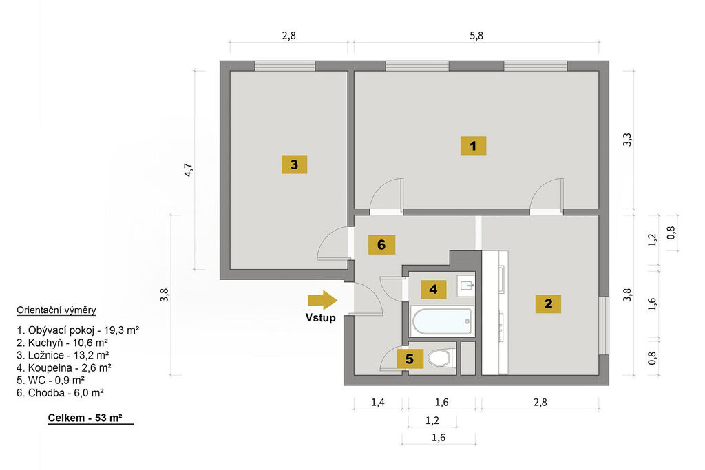 Nabízíme byt 2+1 o 53 m² s komorou mimo byt, v posledním 4. NP (3. patro) udržovaného domu bez výtahu. Dům je zateplený a byt má plastová okna. Jednotka je určena ke kompletní rekonstrukci – ideální příležitost navrhnout si interiér podle vlastních představ.