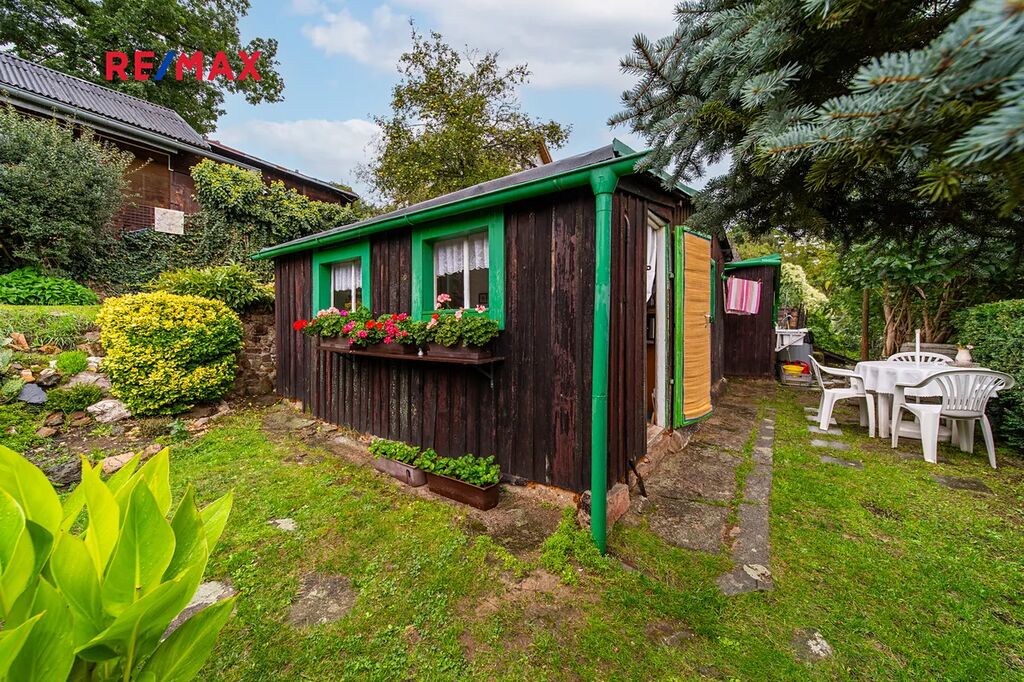 Chata se zahradou se prodává včetně veškerého vybavení a je na vlastním pozemku.