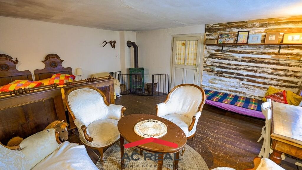 Postavena kolem roku 1870, pečlivě udržovaná chalupa o dvou obytných patrech (187 m²) stojí na pozemku o rozloze 817 m² v samotném centru obce, ale díky zahradě chráněné živým plotem nabízí klid a soukromí.
