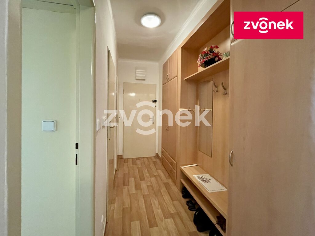 Do bytu se vchází prostornou chodbou s vestavnou odkládací stěnou a skříní na míru, vpravo jsou vstupy na samostatnou toaletu, do koupelnu s vanou, umývadlem a pračkou, do kuchyně s kuchyňskou linkou na míru s dostatkem úložných prostor a do ložnice. Naproti ložnice se nachází obývací pokoj s orientací na jih, výstupem na terasu a krásným výhledem do kraje. K bytu náleží velký sklep, který se nachází v 1.NP, výhodou je bezbariérový vstup do sklepních prostor i bočním vchodem (např. pro uložení kola).