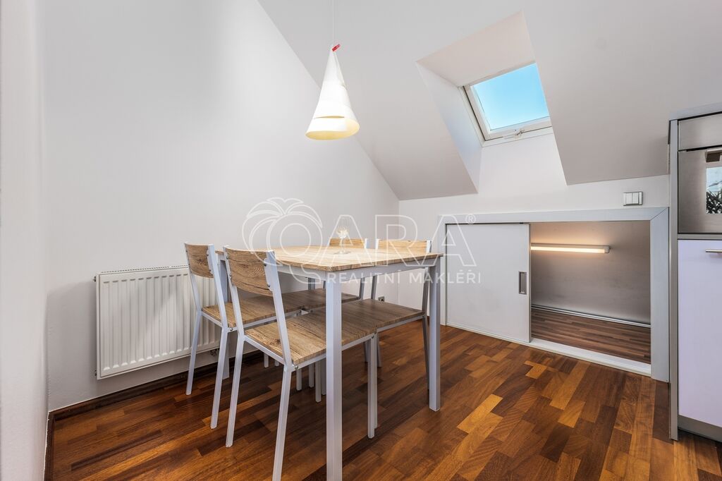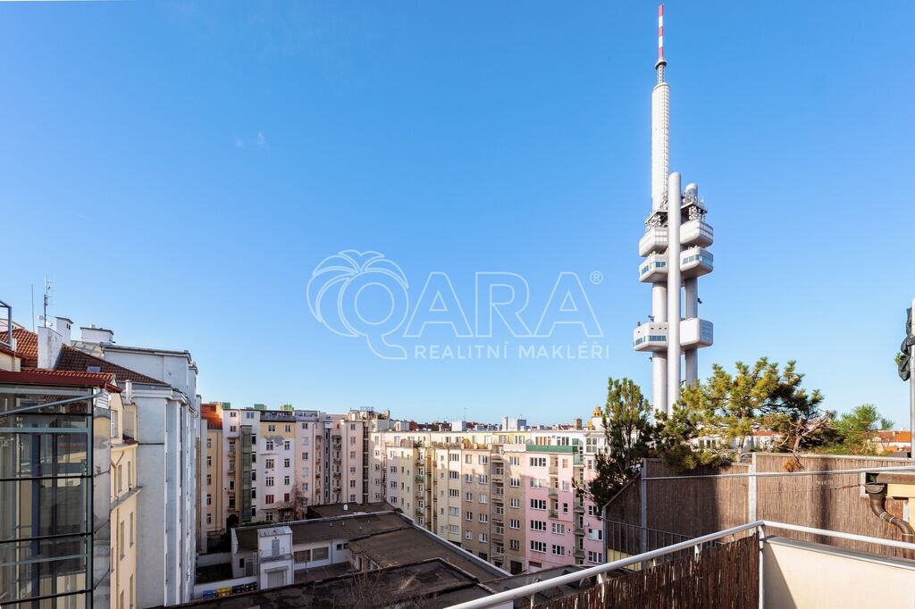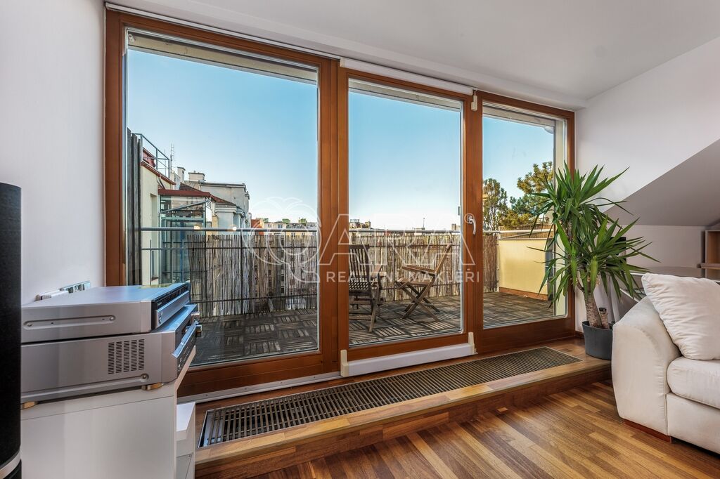 Pronájem slunného nadstandardního mezonetové bytu 3+kk s terasou a sklepem o celkové ploše 97 m2 v žádané lokalitě pražských Vinohrad, Praha 3, ulice Velehradská v těsné blízkosti náměstí Jiřího z Poděbrad.