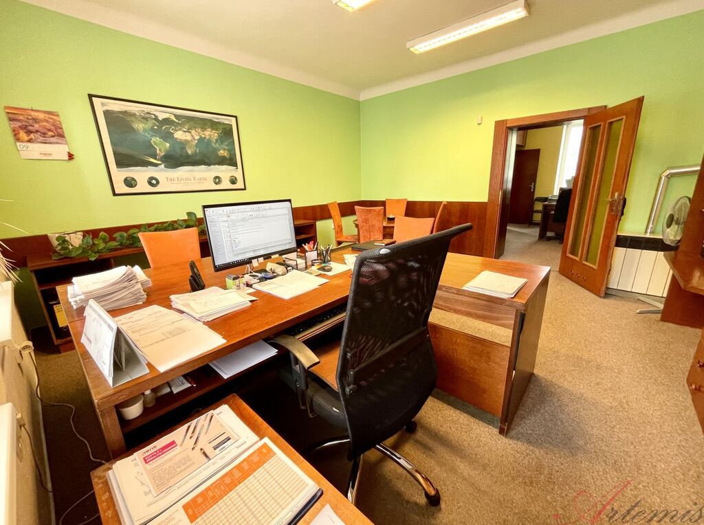 K celopodsklepenému domu s třemi nadzemními podlažími o výměře 321m2 a zastavěné ploše 136m2 náleží udržovaná zahrada o výměře 188m2. Bytové jednotky o dispozici 3+1 slouží jako kanceláře a disponují komorou, sociálním zařízením a kuchyňkou. Druhé nadzemní podlaží má nad rámec balkon s výhledem do zahrady, třetí podlaží navíc dvě další místnosti, sloužící coby sklad archiválií. Vytápění zajišťují plynová topidla Gamat a plynový kotel, v podkroví je instalována klimatizace. Pro každé patro je samostatný elektroměr a plynoměr. Rozvody v domě jsou: elektřina - měď, plyn - měd, voda - plastové trubky, vnitřní odpadní trubky - plast.