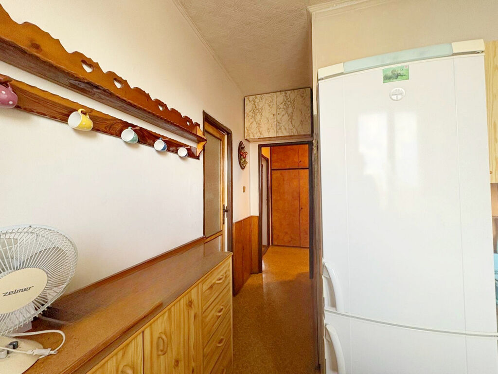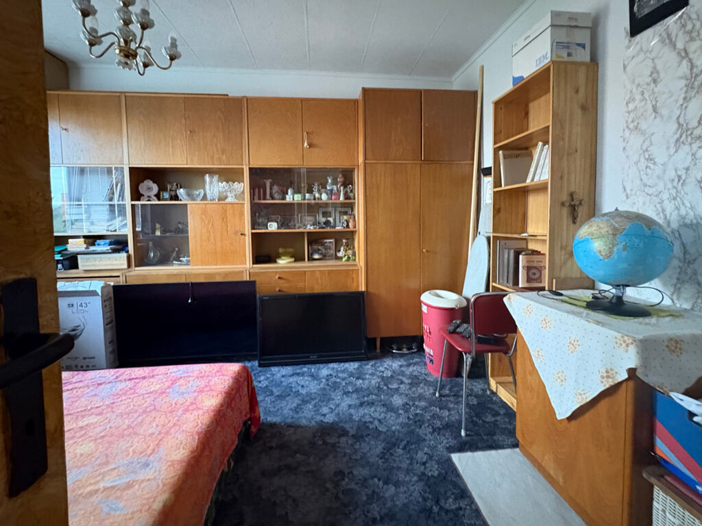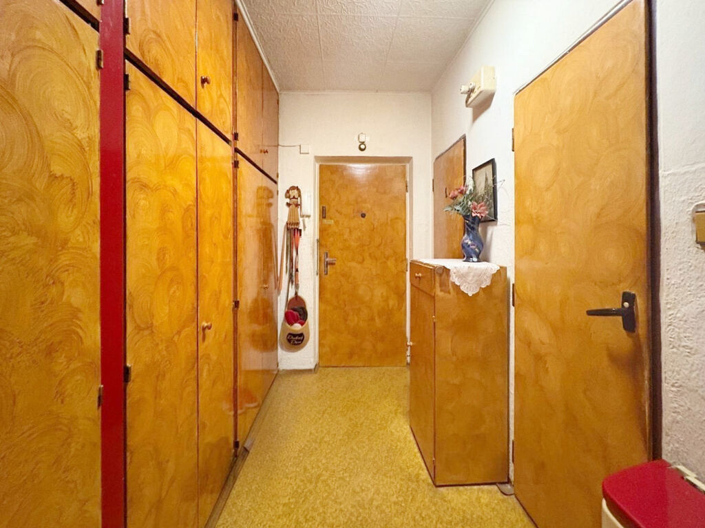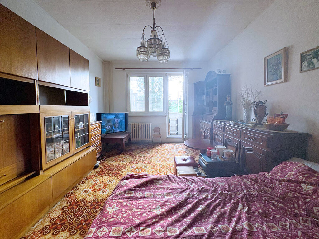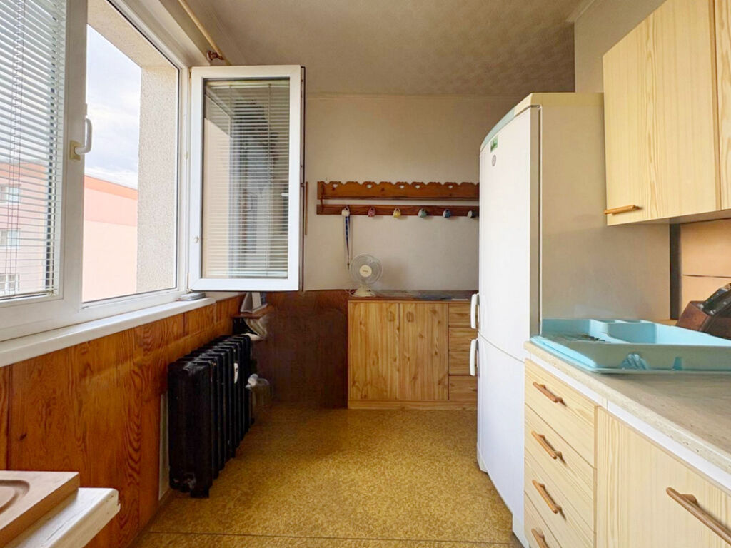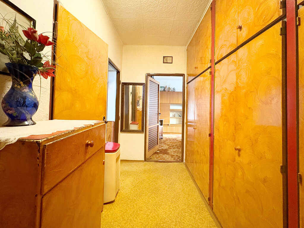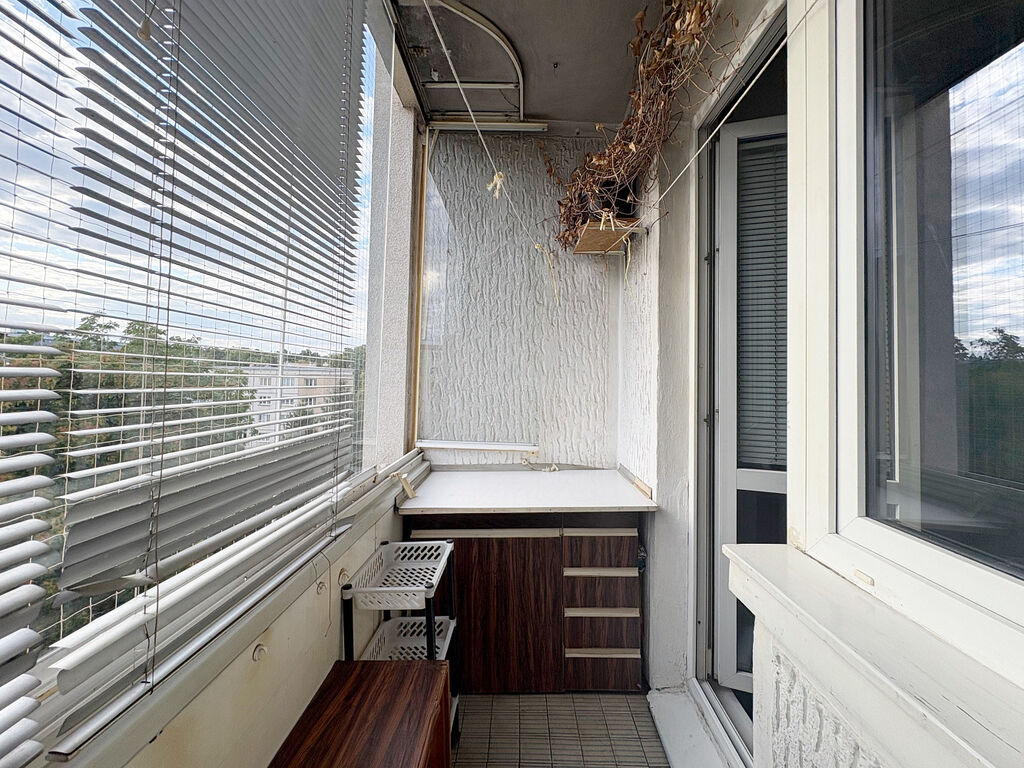 Byt je v původním stavu – elektřina, podlahy i koupelna čekají na rekonstrukci. Výhodou je ale plně funkční kuchyň i koupelna, takže můžete byt ihned užívat a přestavbu řešit postupně. Velkým plusem je množství úložného prostoru v předsíni a zasklená lodžie, která rozšiřuje obytnou plochu a nabízí klidné posezení s výhledem.