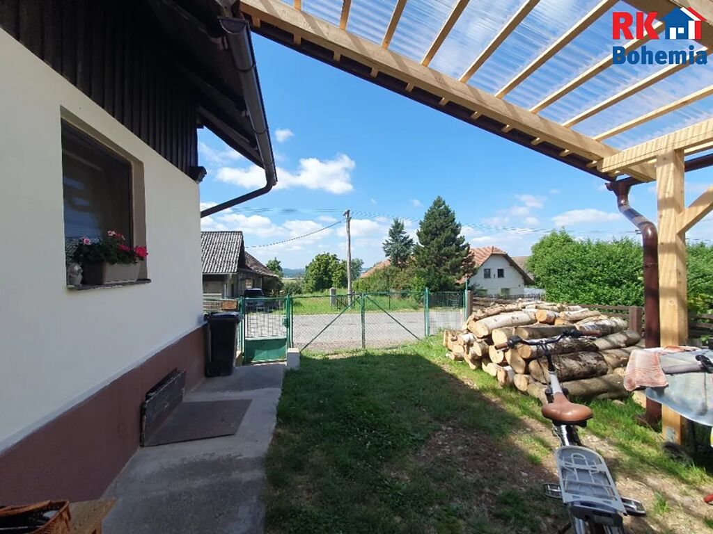 Součástí pozemku je také praktický přístřešek na auto, který je propojen s pergolou s příjemným posezením, ideálním pro večery v každém ročním období.