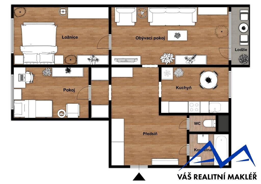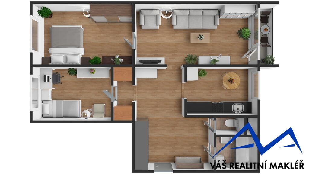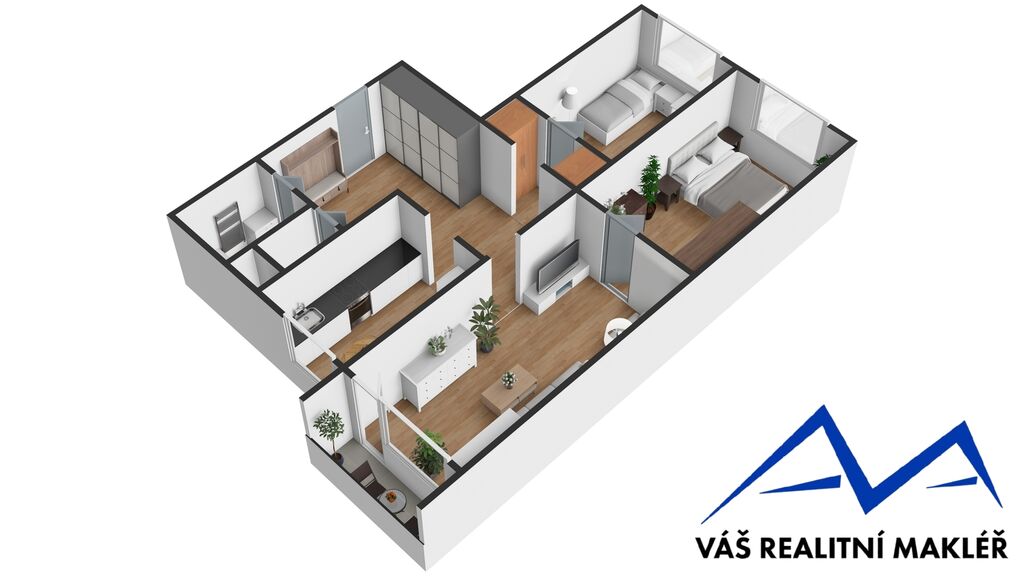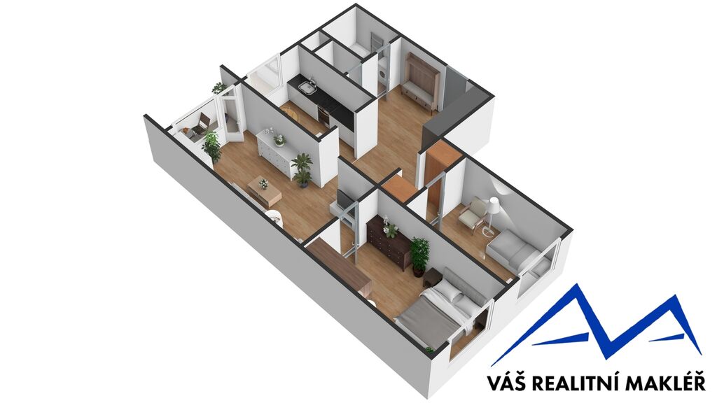 Interiér bytu nabízí praktické rozložení, které dává možnost vytvořit útulné pokoje dle vašich představ. Prostorný obývací pokoj je ideální pro rodinné chvíle a společné aktivity. V kuchyni lze snadno vybavit jídelní kout, kde se mohou konat společné rodinné večeře.