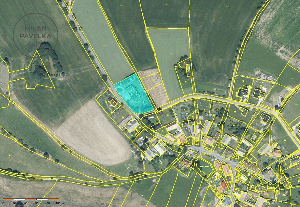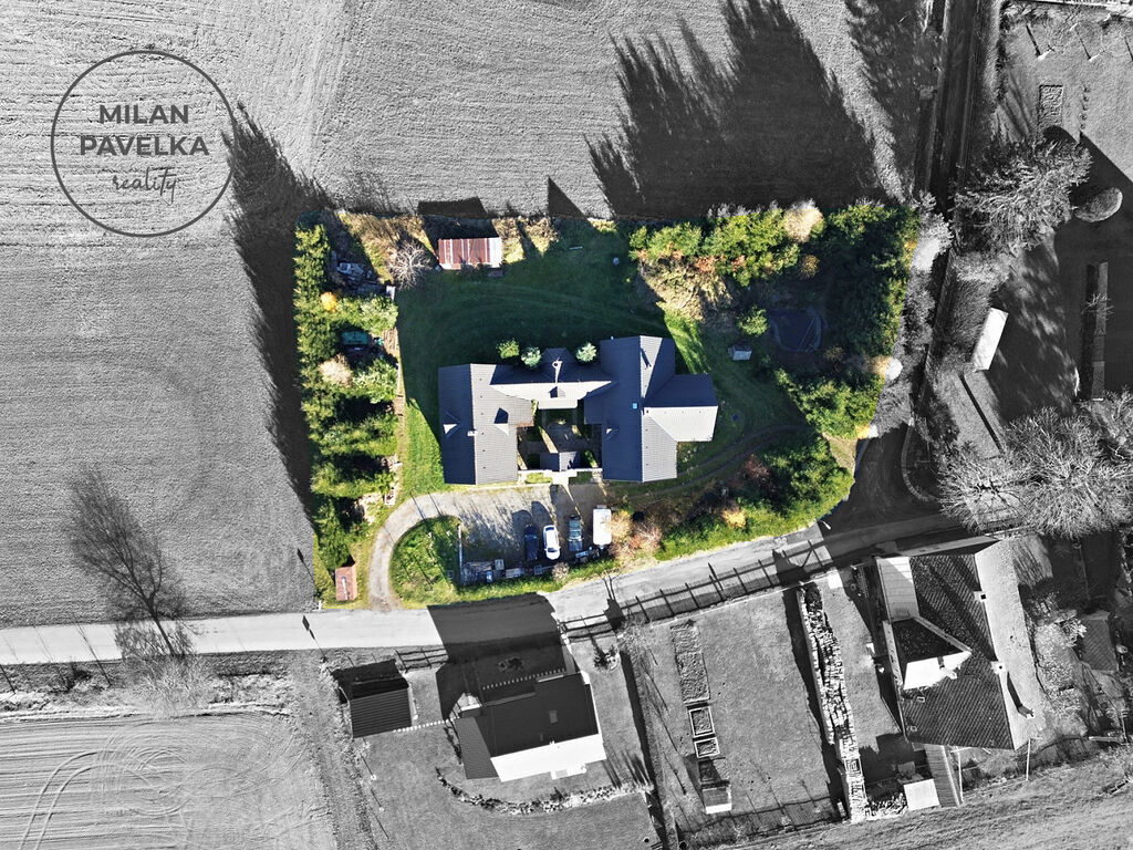 Celková plocha pozemku má výměru 2.757 m² a jedná se o krajní pozemek obce, tím pádem je zde dostatek soukromí a klidu.