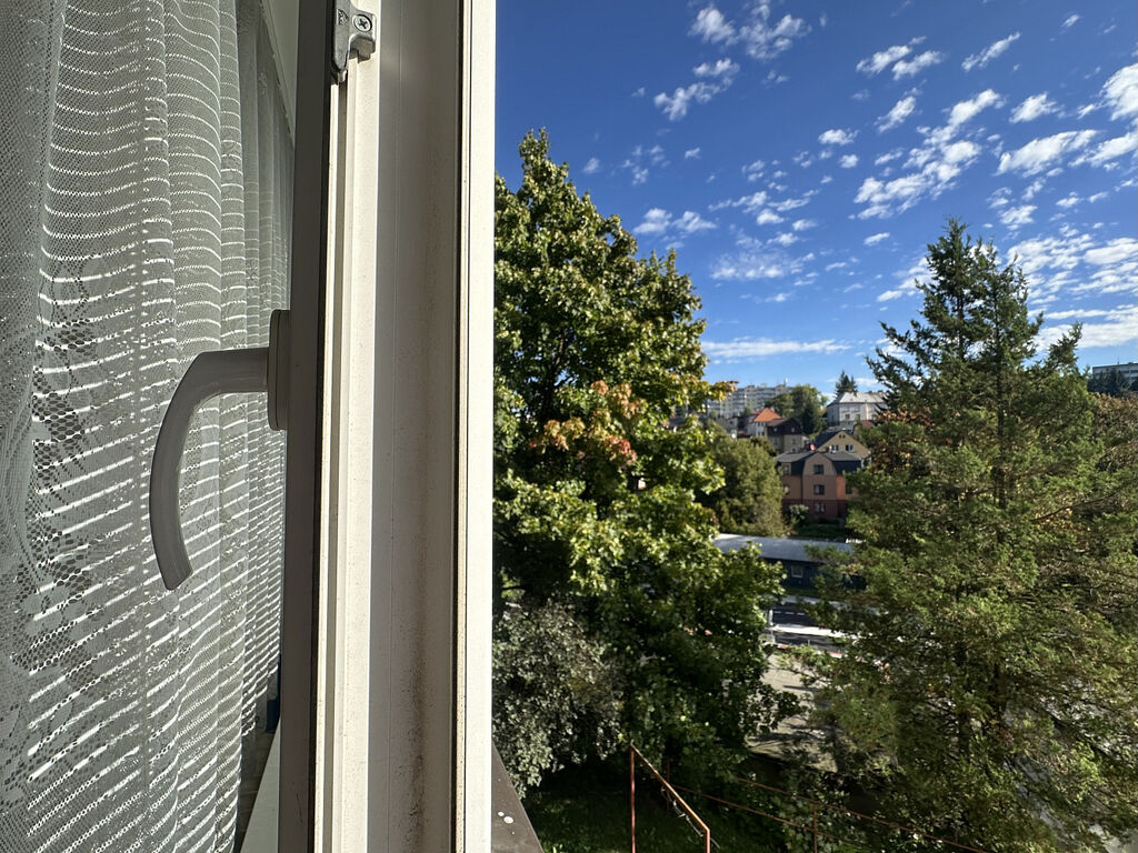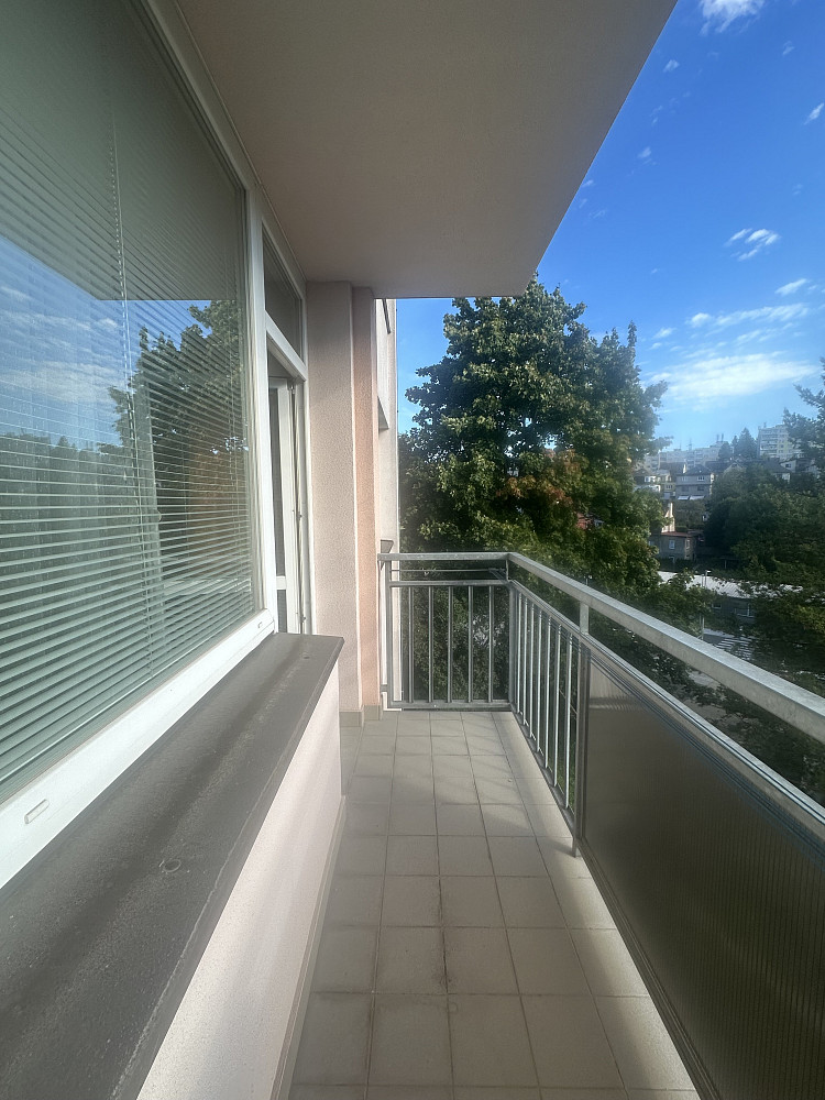 Jedná se o klasickou dispozici bytu 3+1 se samostatnou kuchyní a dále se sousedícím obývacím pokojem s balkonem, kde najdete vstup do většího pokoje / ložnice a dále průchod – propojeno s malým pokojem, jež má vstup i s předsíňové haly. Koupelna i WC jsou umístěny v těsném sousedství, ale samostatné / zcela odděleny. Jedinečnou předností bytu je větší předsíň se vstupní halou a praktickou bytovou komorou. Orientace bytu jihovýchod – dopolední sluníčko. Důraz klademe na velice slušnou a stálou klientelu v domě – doporučujeme jako klidné rodinné bydlení.