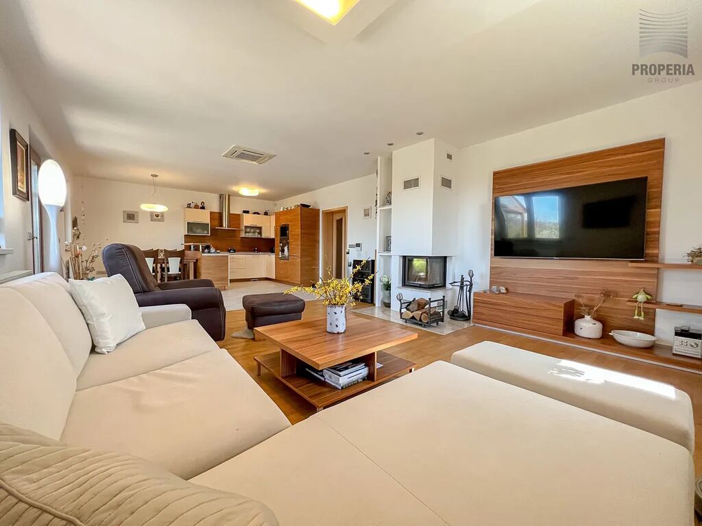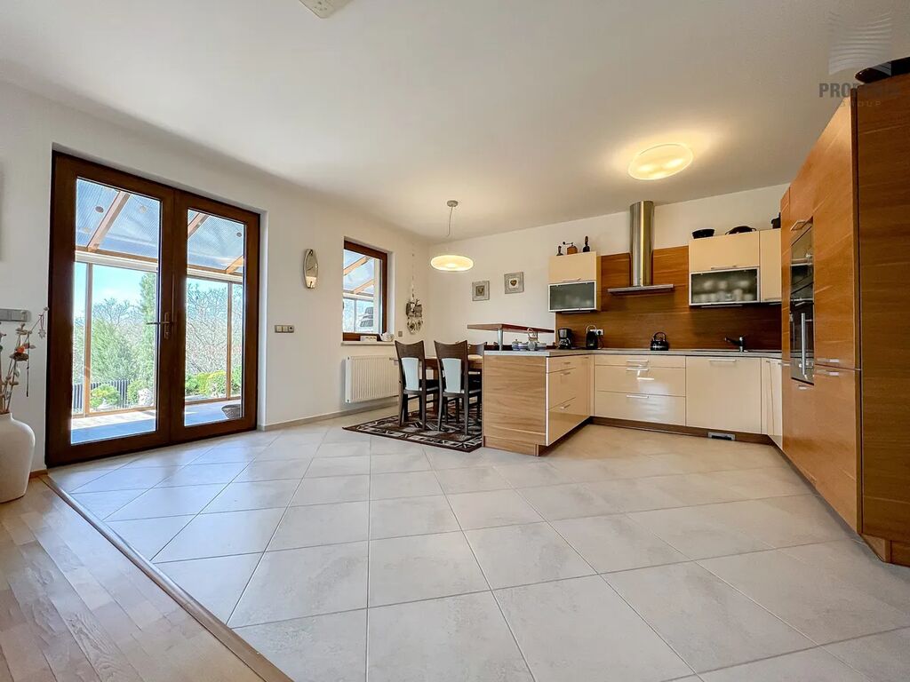 Exkluzivně nabízíme ke koupi moderní rodinný dům o dispozici 4+kk a užitné ploše 194 m², který se nachází na nádherném a tichém místě v obci Moravský Krumlov. Dům stojí na rozlehlém pozemku o velikosti 3 308 m², s minimálním počtem sousedů a kouzelným výhledem na kapli sv. Floriána.