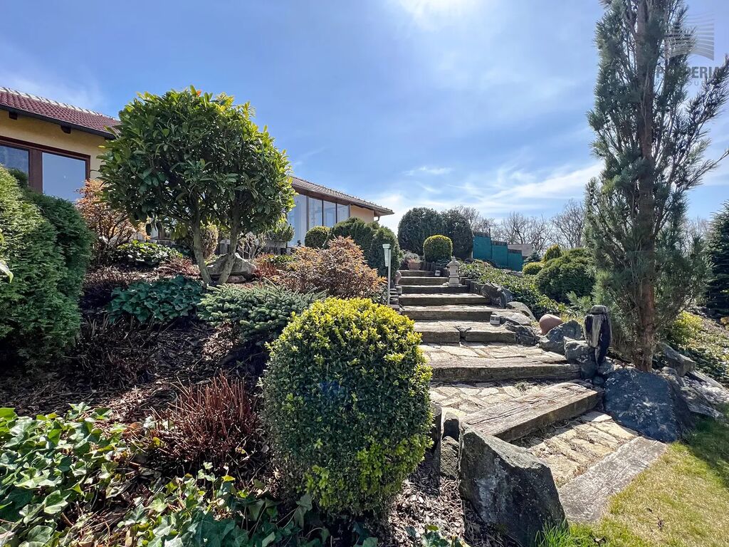 - stylová, perfektně udržovaná zahrada s vlastním bazénem s přepadem, jezírkem a ohništěm.