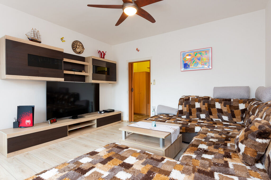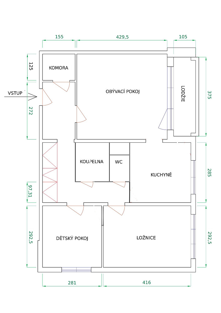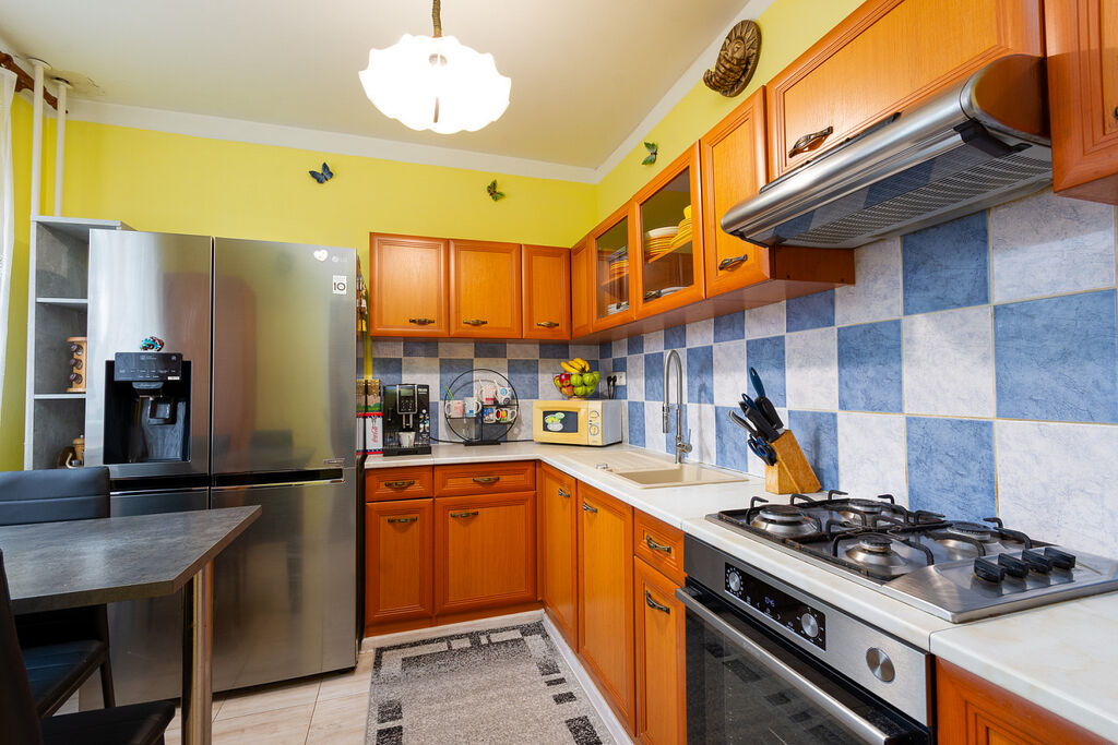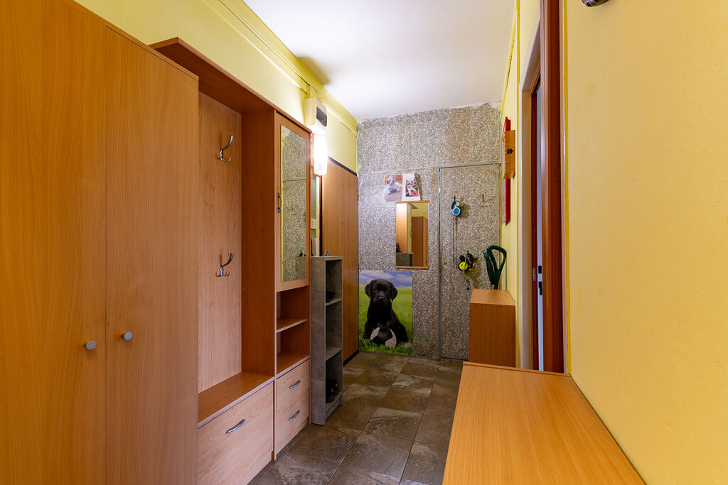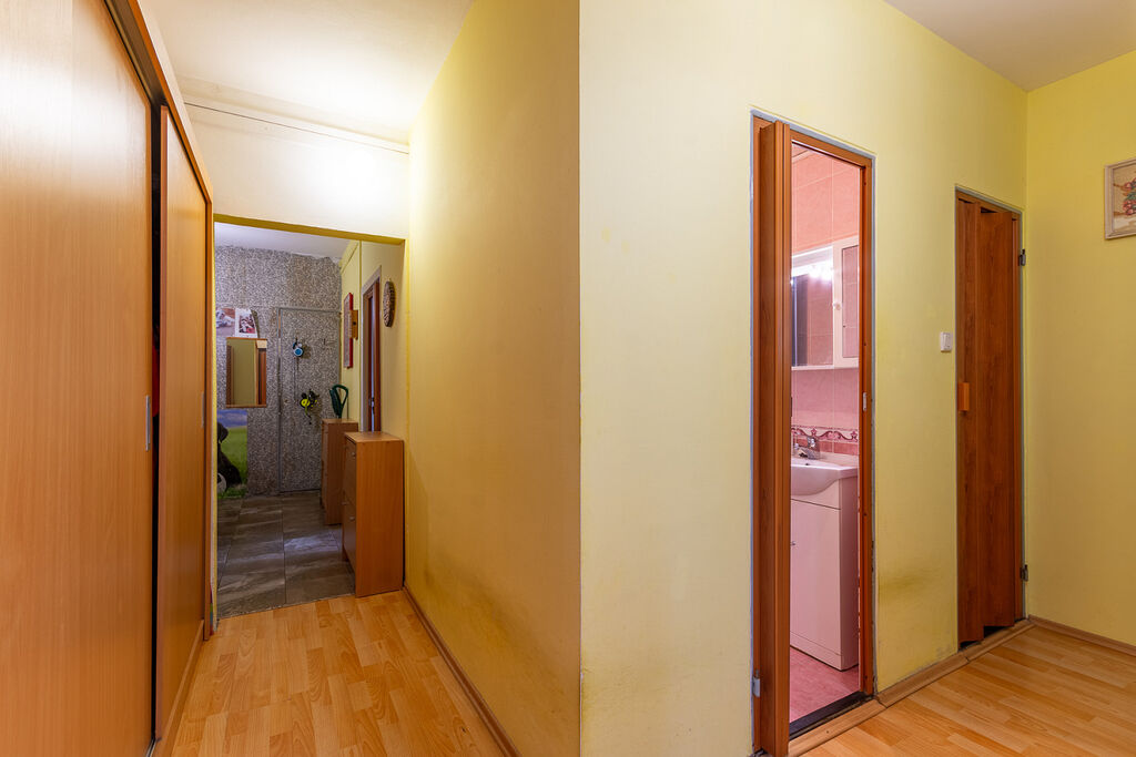 Byt vás přivítá předsíní s vestavěnými skříněmi a praktickou komorou, ideální pro uložení všeho, co má zůstat po ruce, ale ne na očích. Všechny tři pokoje mají samostatný vstup, což zajišťuje soukromí pro každého člena domácnosti. Obývací pokoj je chytře propojený s kuchyní a nabízí vstup na prostornou západně orientovanou lodžii – ideální místo pro večerní kávu nebo dětské hry.