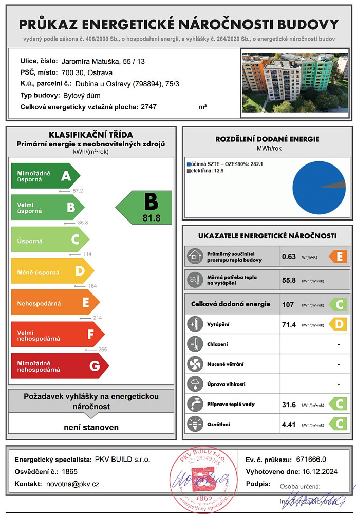 Byt je aktuálně v družstevním vlastnictví. Převod do osobního vlastnictví je možný po doplacení podílu na revitalizaci domu ve výši 40.000 Kč. Financování je možné řešit například pomocí předhypotečního úvěru nebo úvěru ze stavebního spoření.