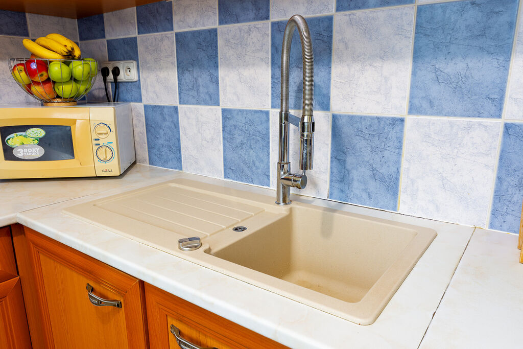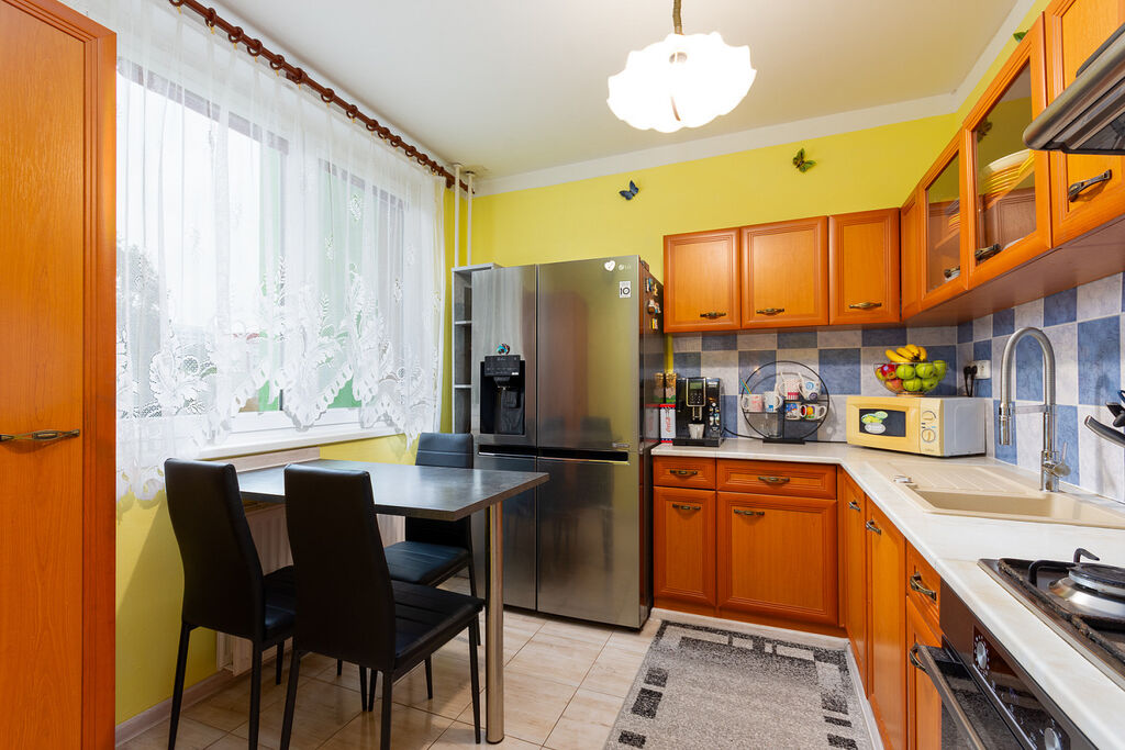 Kuchyně je vybavena rohovou linkou s vestavěnými spotřebiči, takže vás hned po nastěhování čeká příjemné vaření i stolování.