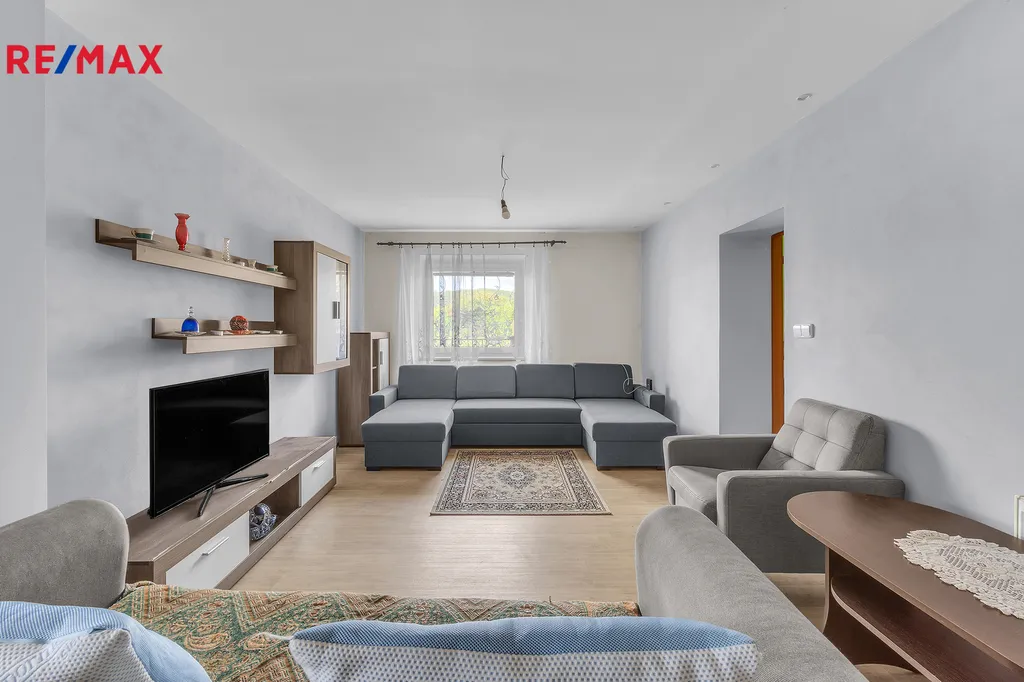 2+1 (74 m²): kuchyň, obývací pokoj, ložnice a prostorná koupelna s WC.