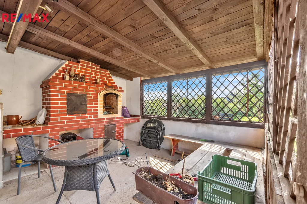 K domu náleží zahrada o výměře 585 m², dvougaráž (27 m2) s dílnou(21 m2) a příjemná pergola pro venkovní posezení.