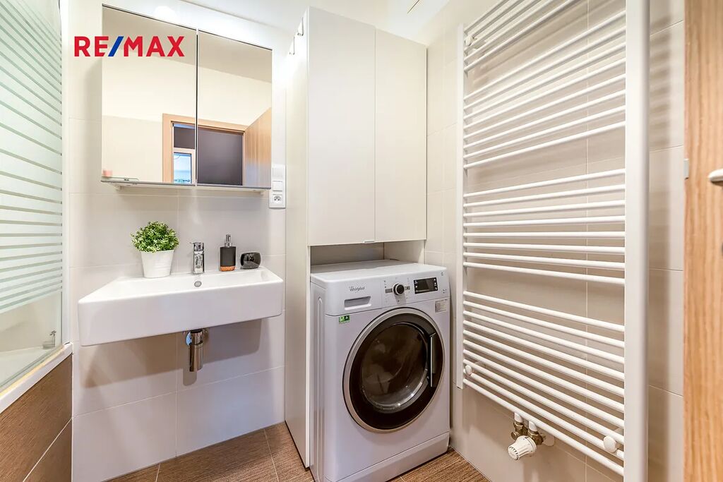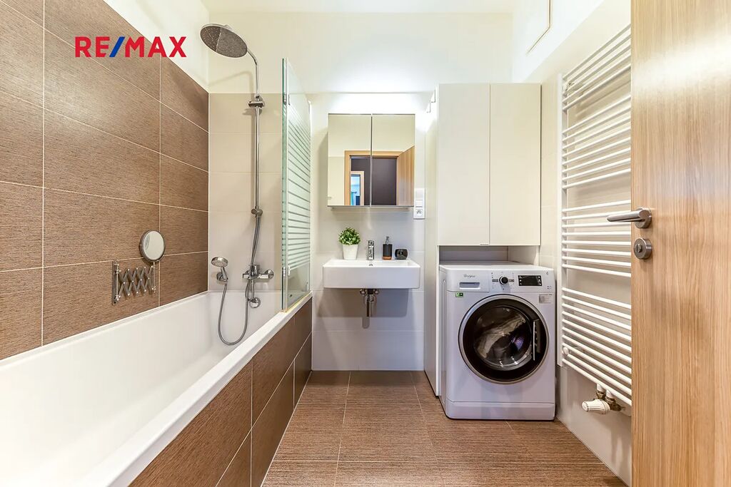 Praktické řešení – koupelna s vanou a pračkou, samostatné WC, dostatek úložných prostor včetně prostorného sklepa 9 m².
