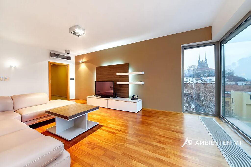 V zastoupení majitele si dovoluji nabídnout nadstandardní pronájem klimatizovaného a plně vybaveného bytu o velikosti 3+kk s terasou, balkónem a dvěma koupelnami v moderním bytovém domě na ul. Kopečná poblíž samotného centra města Brna. Byt je volný k nastěhování od 1.11.2025.