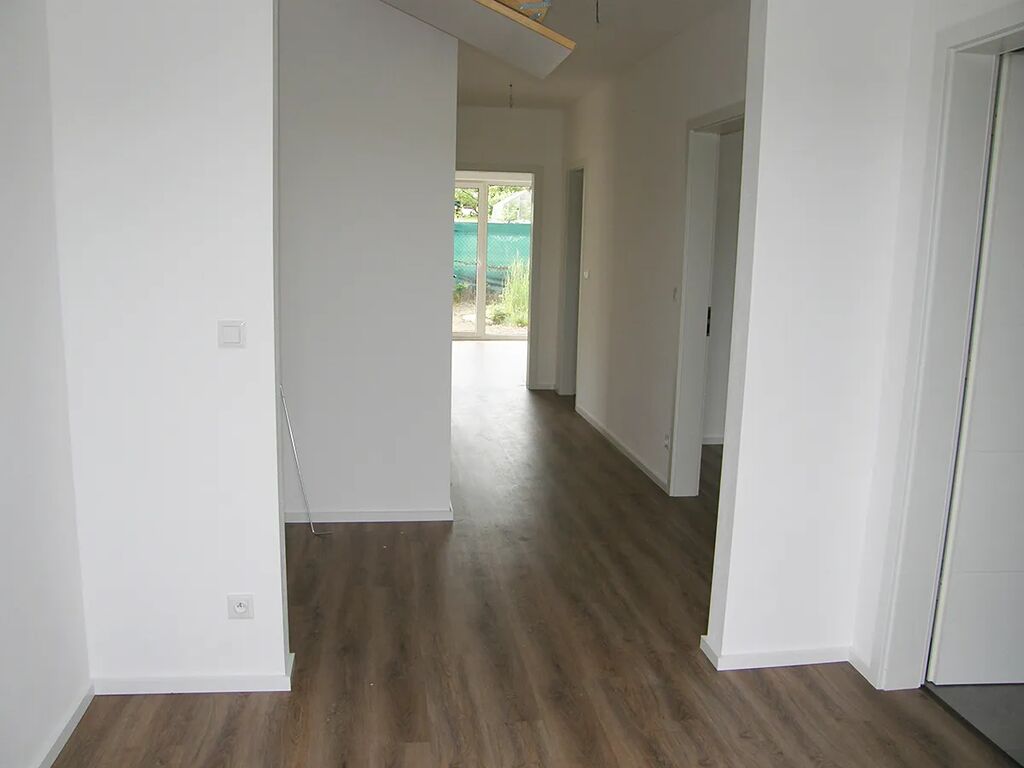V rodinném domu se nachází zádveří (5,8 m2), na které navazuje chodba (9,0 m2), obývací pokoj s kuchyňským koutem (32,0 m2), ložnice se šatnou (17 m2), další dva samostatné pokoje (11,8 m2 a 10,4 m2), koupelna se sprchovým koutem a WC (6,9 m2), další samostatné WC (1,3 m2) a technická místnost (5,3 m2), ve které je umístěna jednotka tepelného čerpadla, el. bojler a je zde i prostor pro umístění pračky. Objekt není podsklepen.