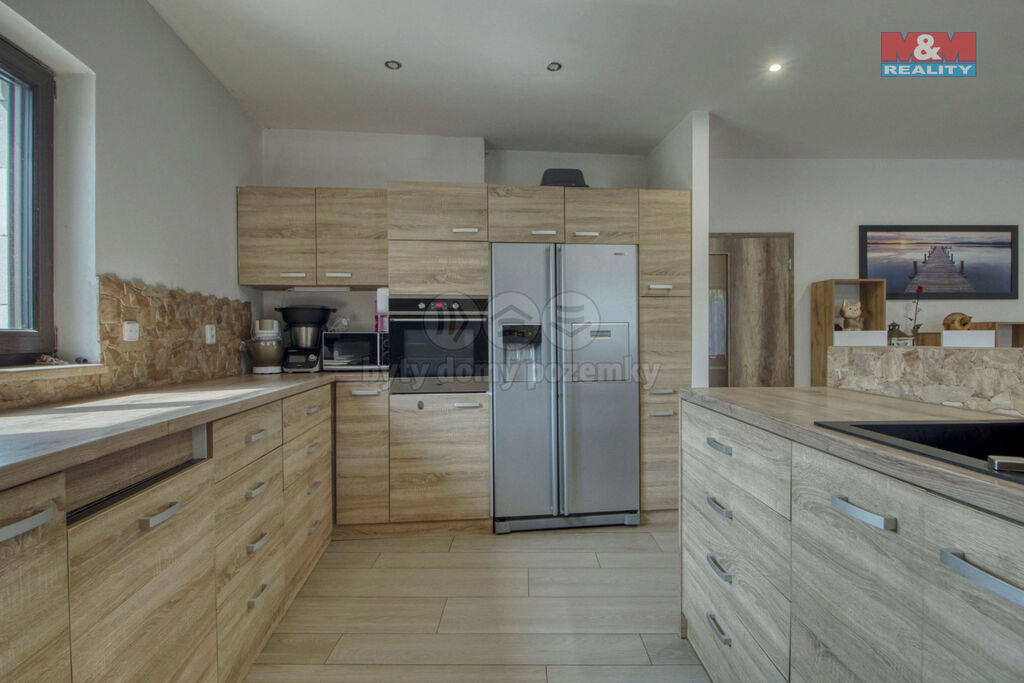 Nabízíme k prodeji moderní novostavbu rodinného domu v klidné části obce Tymákov. Tento prostorný dům o užitné ploše 151 m² nabízí pohodlné bydlení ve výjimečně příjemném prostředí. Dům je dispozičně řešen jako 4+kk: vstupní chodba, ložnice, tři pokoje, koupelna, samostatná toaleta, kuchyně spojená s obývacím pokojem a vstupem na terasu, a technická místnost. K domu náleží garáž a zahrada o rozloze738 m².Dům disponuje moderními technologiemi – vytápění je řešeno kondenzačním plynovým kotlem s podlahovým topením a krbová vložka s výměníkem je napojena na radiátory a bojler. Ve všech oknech jsou instalovány elektrické rolety.. Neváhejte a využijte jedinečnou příležitost vlastnit tento kvalitní a komfortní rodinný dům.Pro více informací nás neváhejte kontaktovat. S financováním Vám rádi pomůžeme. Těšíme se na Vás na prohlídce.