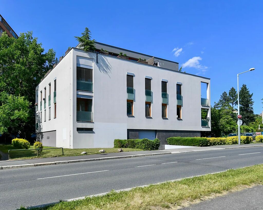 Nabízíme ke koupi moderní a světlý byt o dispozici 3+kk a podlahové ploše 73 m², situovaný v posledním 3. podlaží nízkopodlažní novostavby z roku 2013, v klidné ulici U Koupadel, Praha-Krč. K bytu náleží také dvě garážová parkovací stání a střešní terasa o rozloze 44 m², která poskytuje naprosté soukromí a nádherný výhled do zeleně a na město.