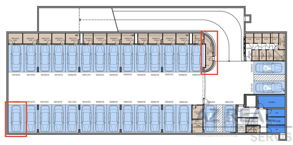 K bytu náleží nadstandardně velký sklepní prostor (7 m²) a garážové parkovací stání přímo v domě.