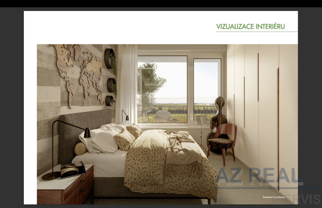 Dispozice bytu zahrnuje prostornou vstupní chodbu, šatní místnost (komoru), koupelnu s vanou a toaletou, ložnici a světlý obývací pokoj s kuchyňským koutem, ze kterého je vstup na lodžii orientovanou na západ.