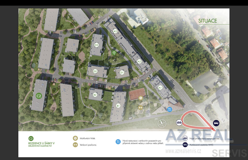 Velkou předností je poloha – dům je poslední v řadě rezidenčního komplexu, do něhož je vjezd pouze pro rezidenty. Za domem je stavební uzávěra díky ochrannému koridoru letiště, což zaručuje otevřený výhled do nezastavěného prostoru. Tyto byty byly pro VIP klienty.