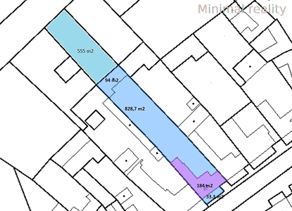 z toho zastavěná plocha domu 184 m2, 828,7 m2 dvůr, 94 m2 stodola, 33,3 m2 předzahrádka,