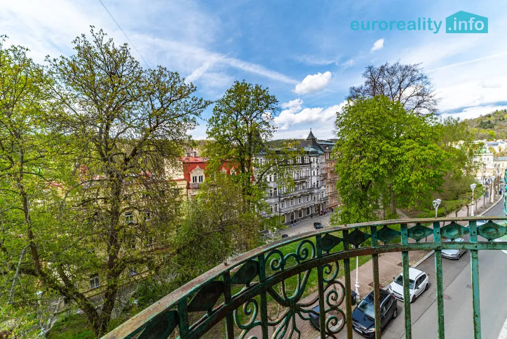Z balkonu si můžete vychutnat klidný výhled do zeleně lázeňského parku, ideální místo pro ranní kávu či večerní odpočinek.