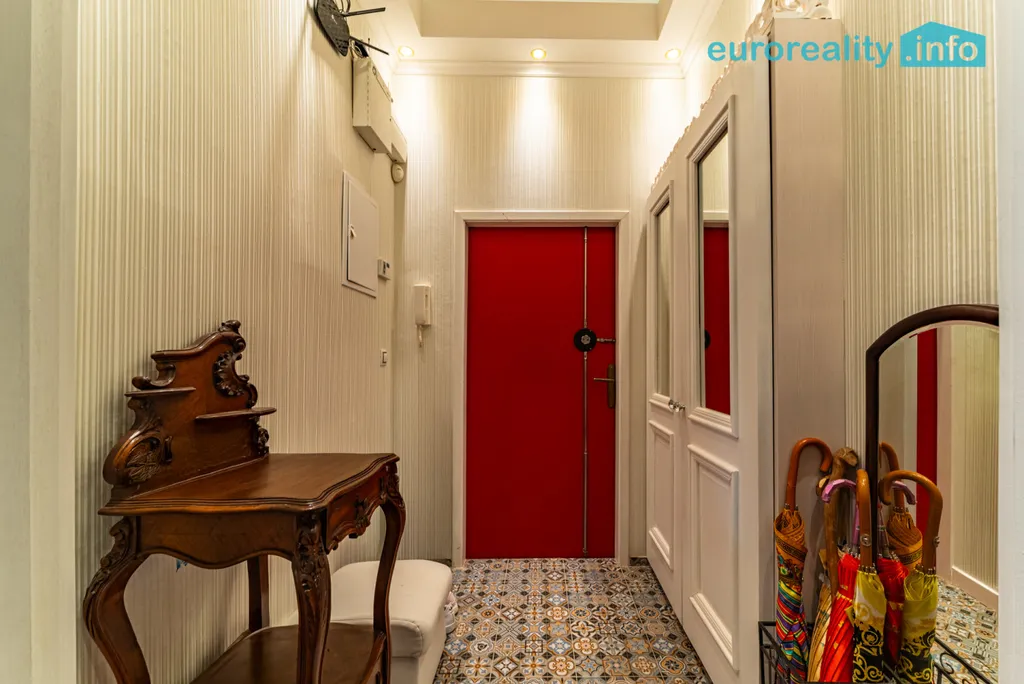 Tento elegantní byt představuje harmonické propojení tradičního lázeňského stylu a moderního komfortu. Na první pohled vás zaujme podlaha z afrického teaku, vysoké stropy se štukovou výzdobou, impozantní křišťálový lustr i kachlová kamna z dílny předního českého kachláře, která dotvářejí autentickou atmosféru starých lázní.