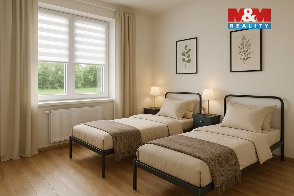 Nabízíme k prodeji novostavbu dvoupatrového rodinného domu 4+1 s podlahovou plochou 168 m² a s pozemkem 777 m² v klidné části obce Mašťov, okr. Chomutov. V přízemí domu se nachází technické zázemí, prostorná garáž, prádelna a sušárna, koupelna a obytná místnost, v 1. patře je dispozičně dům řešen jako 3+1 s WC. Dům je napojen na veřejný vodovod a kanalizaci, vytápění je řešeno kotlem na tuhá paliva. Dům disponuje energetickým štítkem třídy A. Velkou výhodou je umístění prostorného domu vhodného pro rodinné bydlení v klidné lokalitě se snadnou dostupností měst Chomutov 30 minut, Praha 60 minut. S financováním Vám pomůžeme. Pro více informací a domluvení prohlídky nás neváhejte kontaktovat.