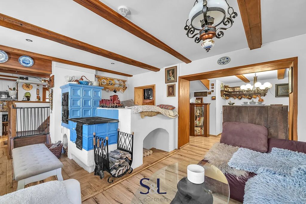 - V přízemí se nachází velká společenská místnost s dominantní pecí, která je srdcem domu a ideálním místem pro večerní posezení.