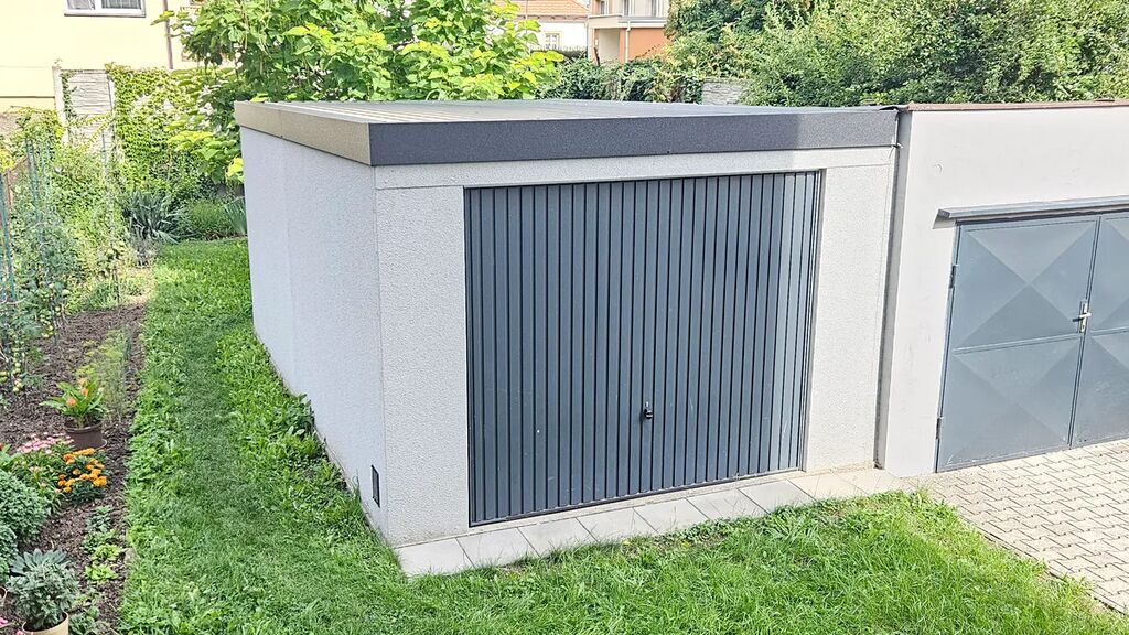 K bytu náleží sklepní koje (6 m2) a novostavba garáže kolaudované v roce 2025 se zavedenou elektřinou. Garáž o ploše 18,6 m2 se nachází přímo za bytovým domem.