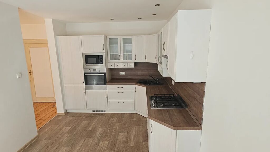 Prodej mimořádně prostorného bytu 2+1 v OV po celkové rekonstrukci s novostavbou garáže. Byt o CP 77 m2 se nachází ve zvýšeném přízemí zatepleného zděného domu ul. Ant. Dvořáka nedaleko centra města. Dům byl v roce 2024 zateplen (20 cm polystyren) a dvě strany bytového domu byly sanovány (odizolovány) k základům budovy. V bytě se nachází vstupní chodba s vestavěnou skříní, dva pokoje, kuchyň s vybavenou kuchyňskou linkou, koupelna s vanou a WC. V roce 2016 proběhla rekonstrukce zahrnující kompletní výměnu topení a instalaci nového plynového kotle, novou vodoinstalací, odpady, rozvody elektřiny, renovaci stávávajících podlah a původních dřevěných obložkových zárubní, novou koupelnu, samostatné WC a kuchyňskou linku. V bytě byly sníženy stropy a provedena tepelně-zvuková izolace. Rovněž byl zateplen strop sklepu. V bytě jsou osazena plastová okna s trojsklem, stáří cca 5 let.