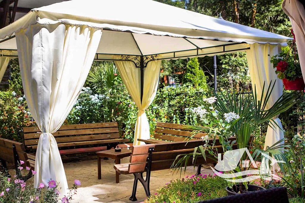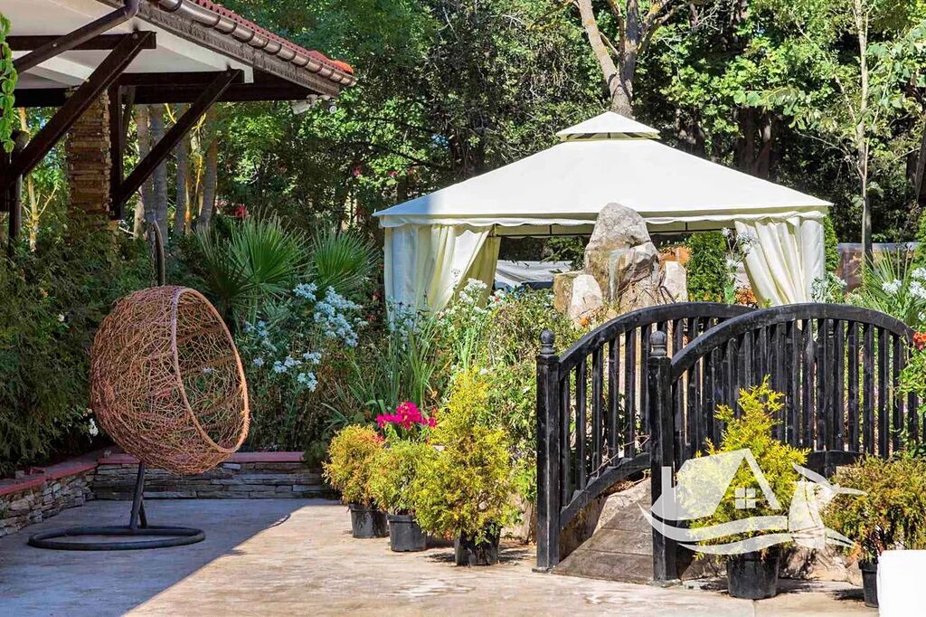 Udržovaná zahrada a relaxační terasa s klidnou atmosférou