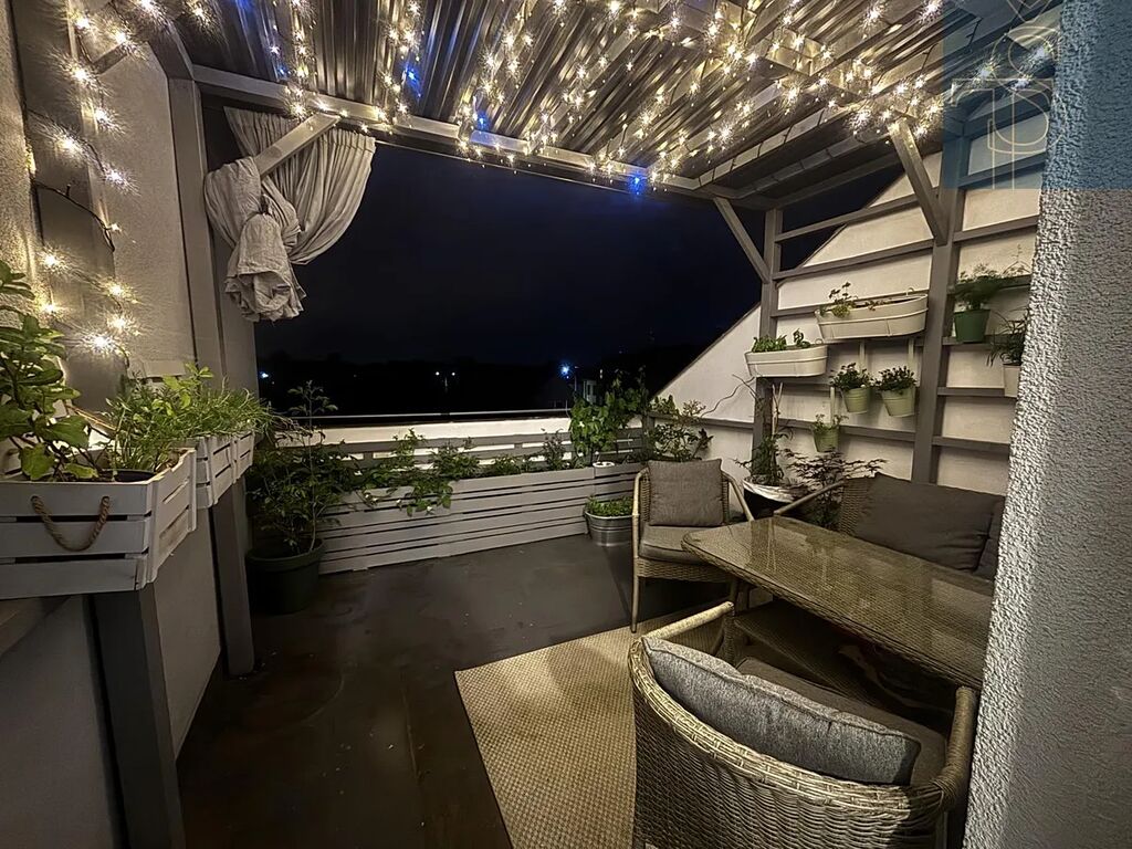 - Slunná terasa je ideálním místem pro víkendové snídaně i večerní pohodu s vínem.