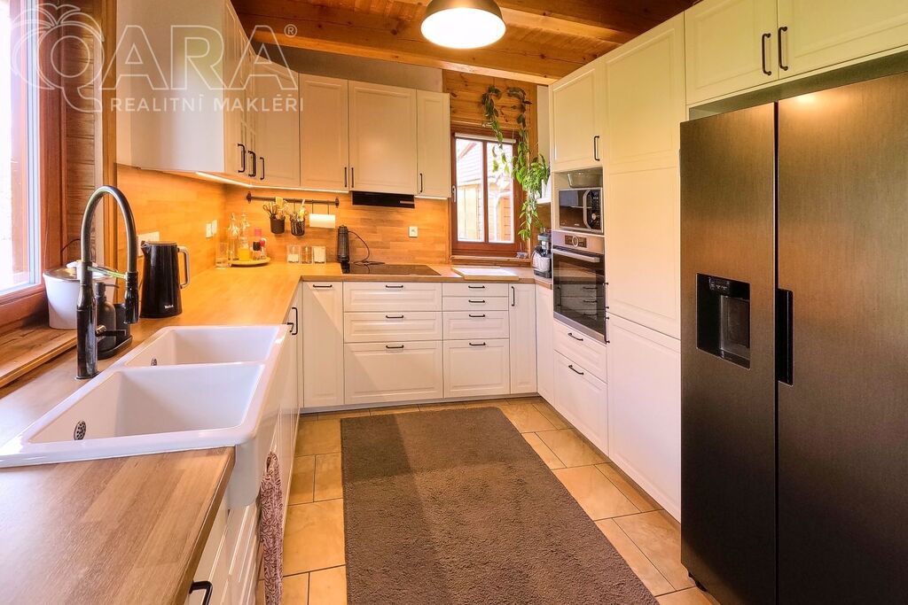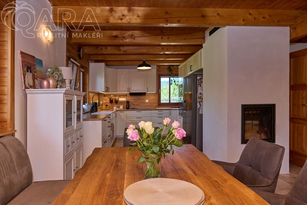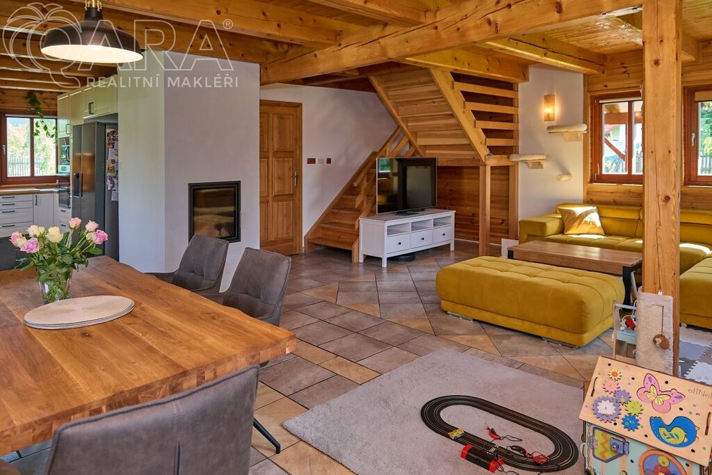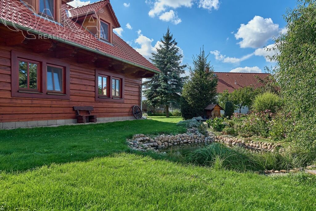Tato roubenka byla zkolaudovaná v roce 2009 a v posledních dvou letech kompletně zrevitalizována. Nabízí komfort více jak 130 m2 celkové užitné plochy s dispozicí 4+kk a se dvěma koupelnami. Rovinatý pozemek nepravidelného tvaru o velikosti 1750 m2 je s láskou a péčí upravovaný. Nabízí ostrůvky okrasných rostlin, zeleninovou část i ovocné stromy. Je tu vybudované přírodní jezírko i malý bazén. K dispozici je také chatka pro děti, malý dřevěný sklad a samostatný dřevník.