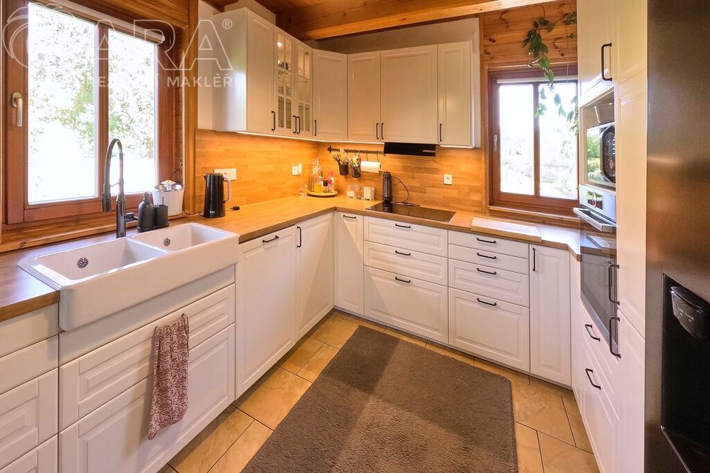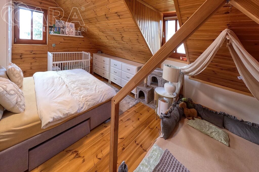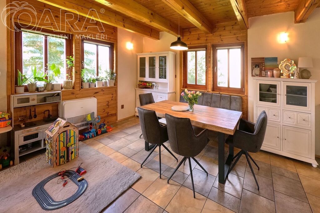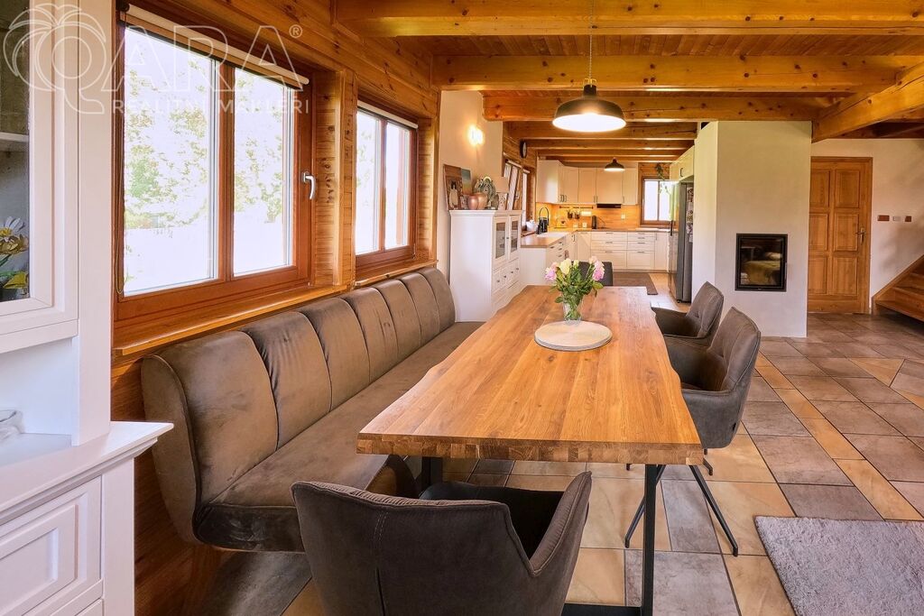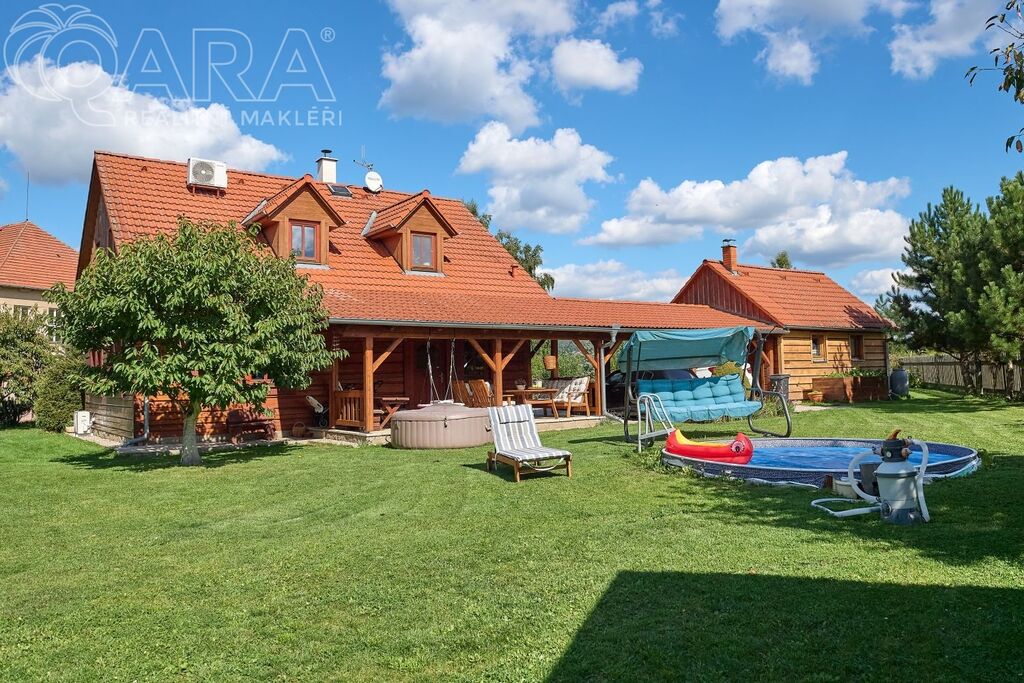 Tato roubenka byla zkolaudovaná v roce 2009 a v posledních dvou letech kompletně zrevitalizována. Nabízí komfort více jak 130 m2 celkové užitné plochy s dispozicí 4+kk a se dvěma koupelnami. Rovinatý pozemek nepravidelného tvaru o velikosti 1750 m2 je s láskou a péčí upravovaný. Nabízí ostrůvky okrasných rostlin, zeleninovou část i ovocné stromy. Je tu vybudované přírodní jezírko i malý bazén. K dispozici je také chatka pro děti, malý dřevěný sklad a samostatný dřevník.