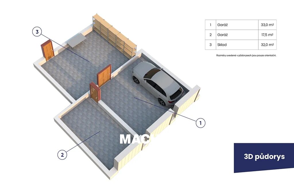 kombinace parkování až 3 osobních vozidel se skladovým zázemím.