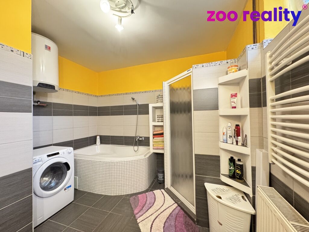 = 1. NP = byt o dispozici 2+1 s krbovými kamny v obývacím pokoji, koupelna s rohovou vanou i sprchovým koutem a samostatná toaleta, (87 m2),
