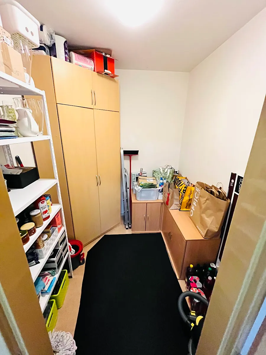 Byt je vybaven kuchyňskou linkou se spotřebiči, pračkou, skříněmi v předsíni. Přímo v bytě je prostorná komora.