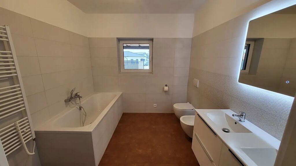 Dům je napojen na obecní vodovod, kanalizaci, elektřinu. Topení je tepelným čerpadlem s podlahovým vytápěním. Vjezdová vrata na dálkové ovládaní, branka.